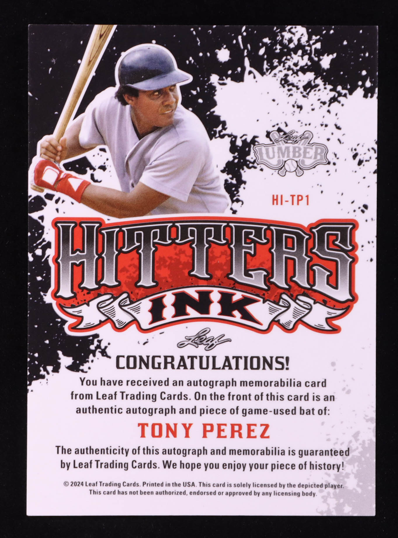 Tony Perez 2024 Leaf Lumber Hitters Ink Purple Bat Autograph #HITP1 #7/9