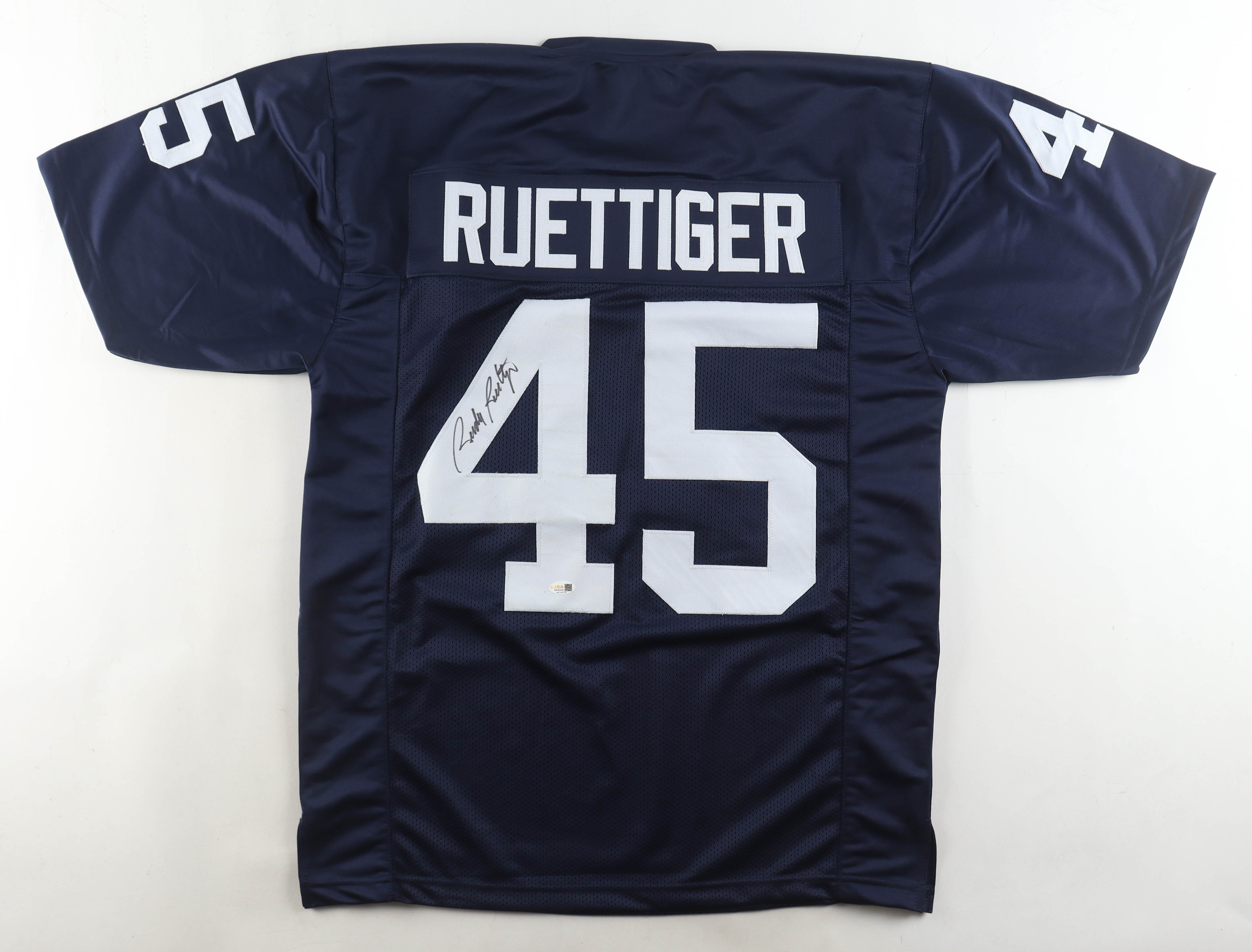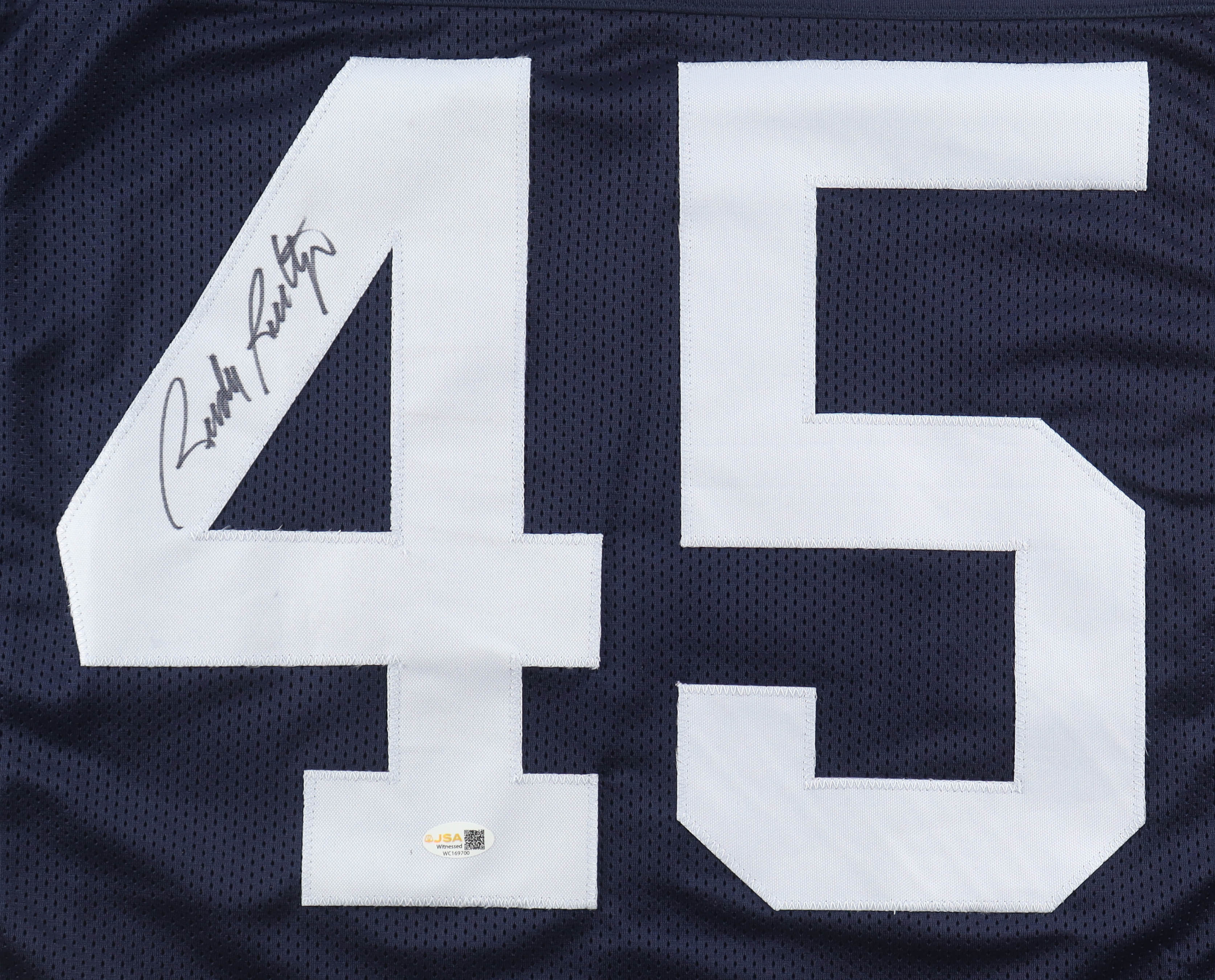 Custom jersey with everything sewn on, size XL. Hand-signed by Rudy Ruettiger.