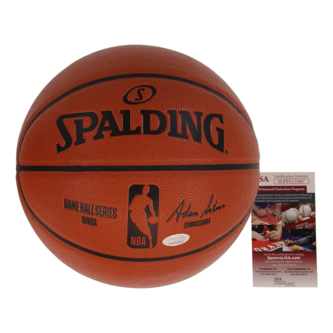 Spalding Official Game NBA Basketball. Hand-signed and inscribed by Jerry West (D. 2024, Los Angeles Lakers, HOF). Please note, there are minor stains throughout the basketball.