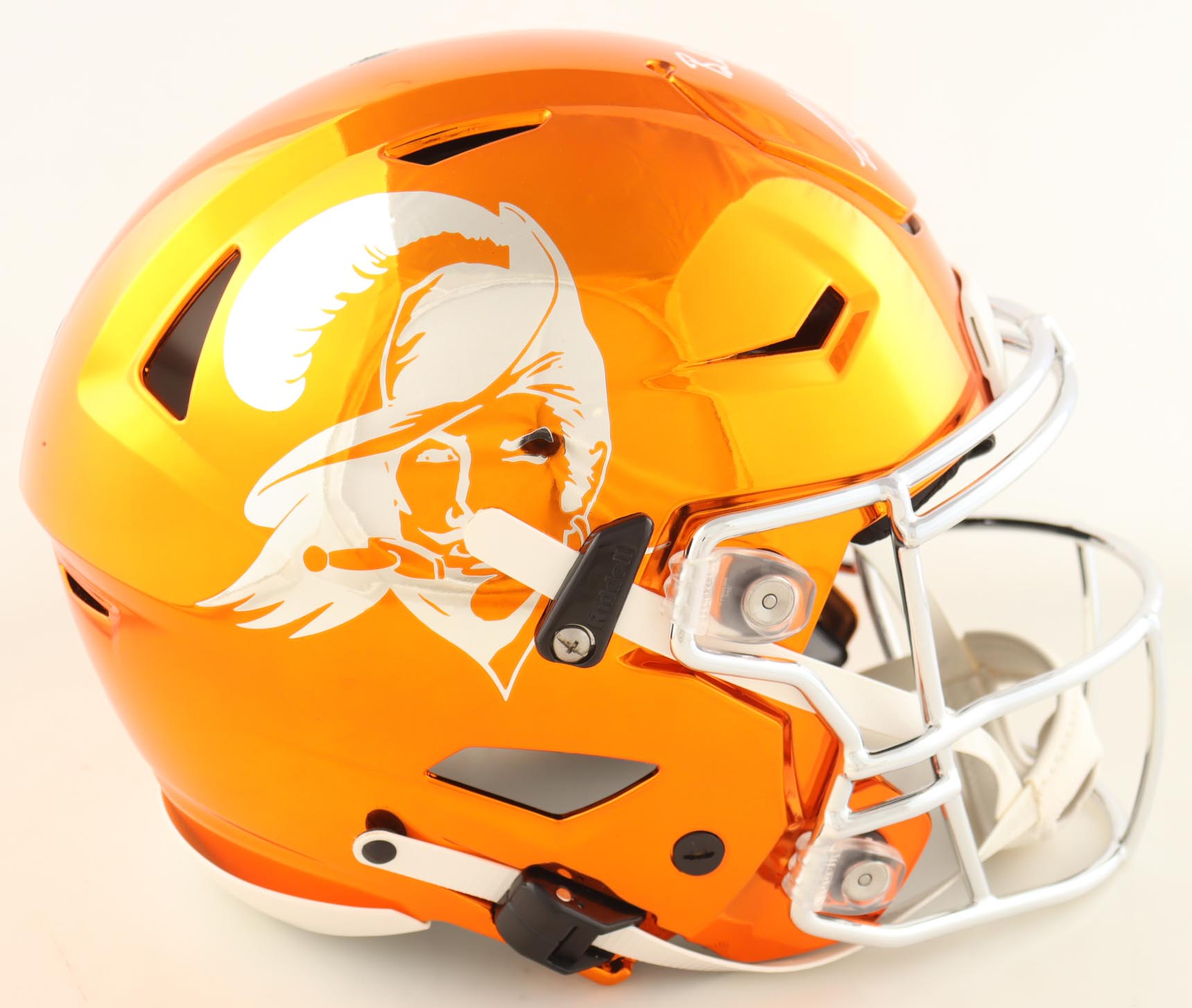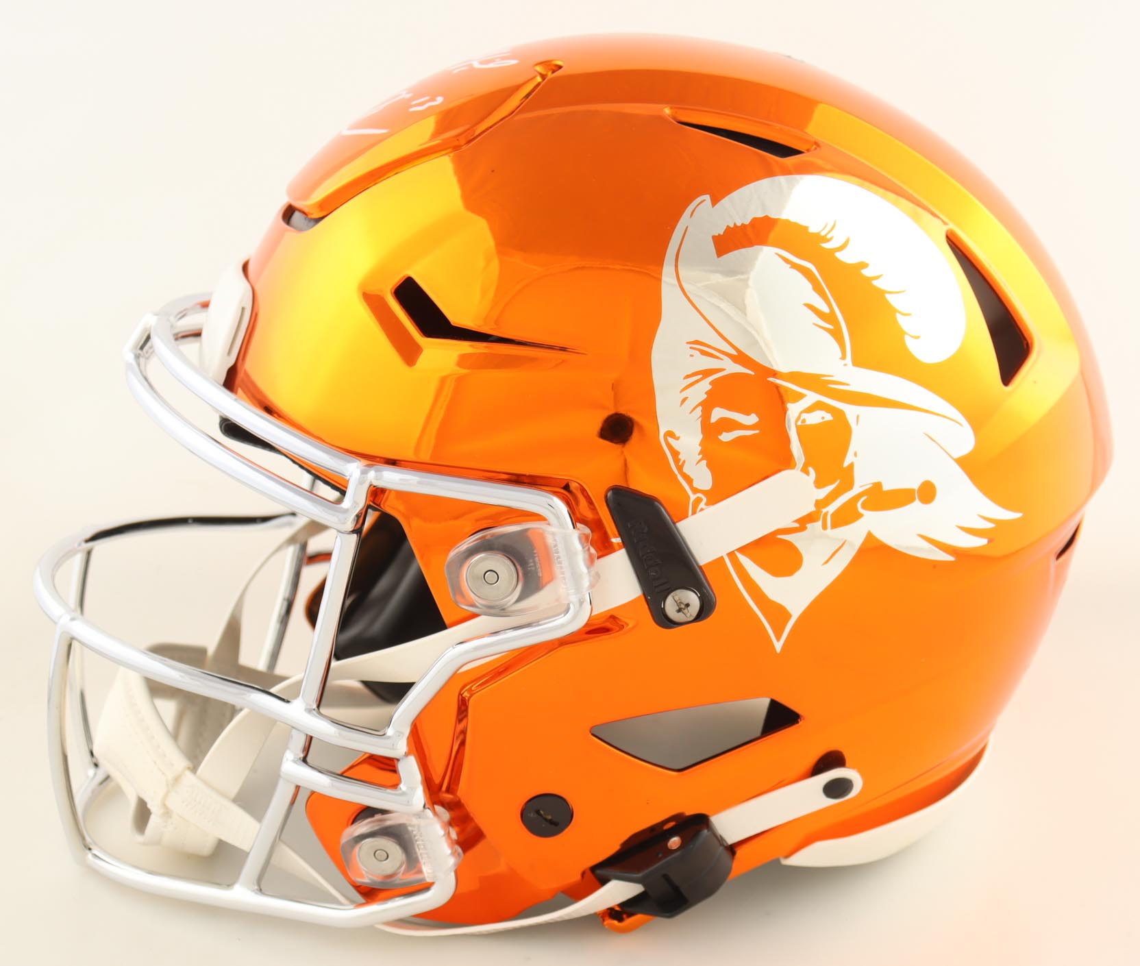 Riddell Tampa Bay Buccaneers full-size authentic on-field Chrome Alternate SpeedFlex helmet has been hand-signed by Baker Mayfield and Mike Evans.
