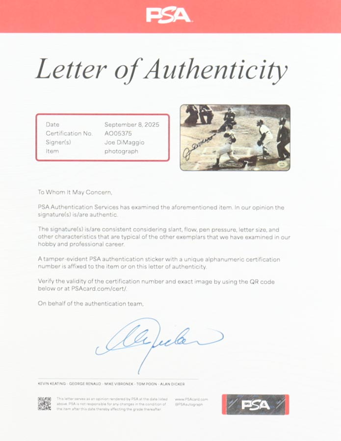 The autograph(s) includes an official PSA/DNA hologram and matching LOA for authenticity purposes.