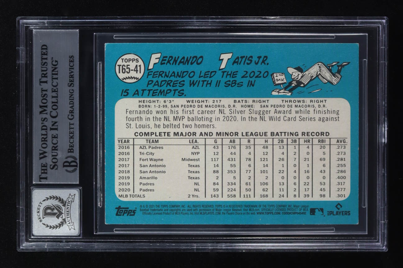 Fernando Tatis Jr. Signed 2021 Topps '65 Topps Redux #T6541 (Beckett | Auto Grade BGS 10)