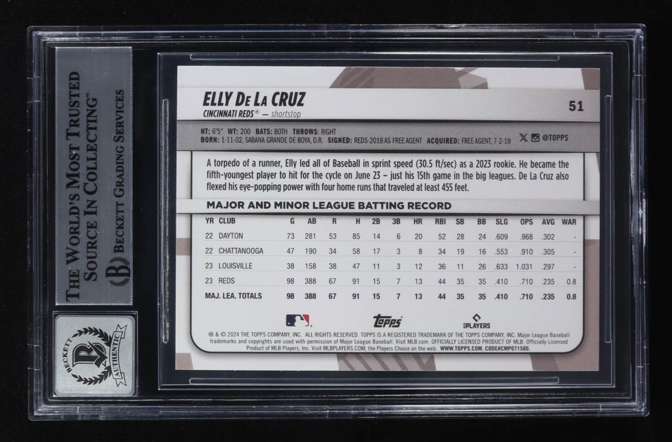 Elly De La Cruz Signed 2024 Topps Big League #51 RC (Beckett | Auto Grade BGS 10)