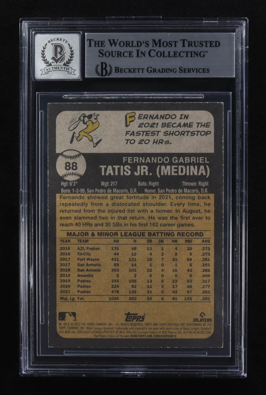 Fernando Tatis Jr. Signed 2022 Topps Heritage #88 (Beckett | Auto Grade BGS 10)