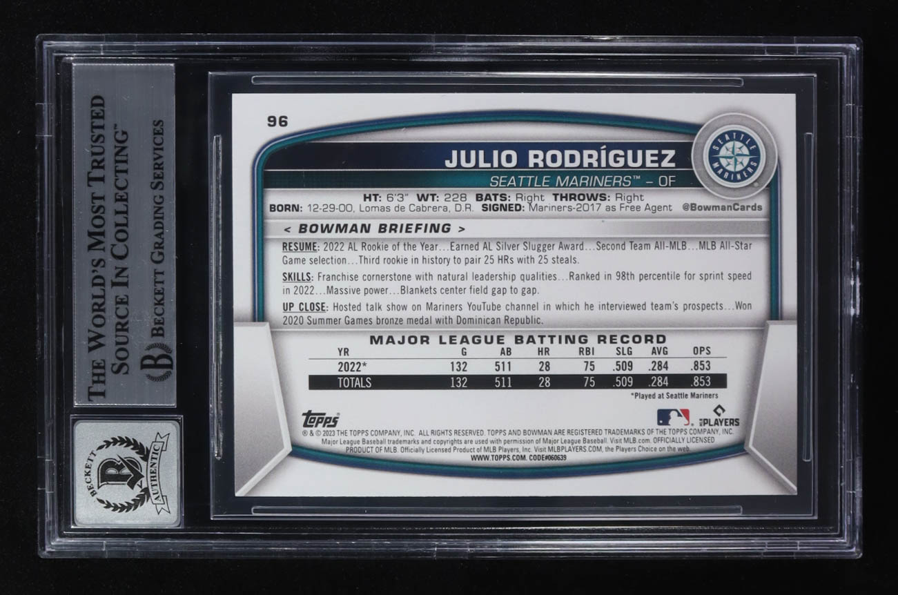 Julio Rodriguez Signed 2023 Bowman #96 (Beckett | Auto Grade BGS 10)