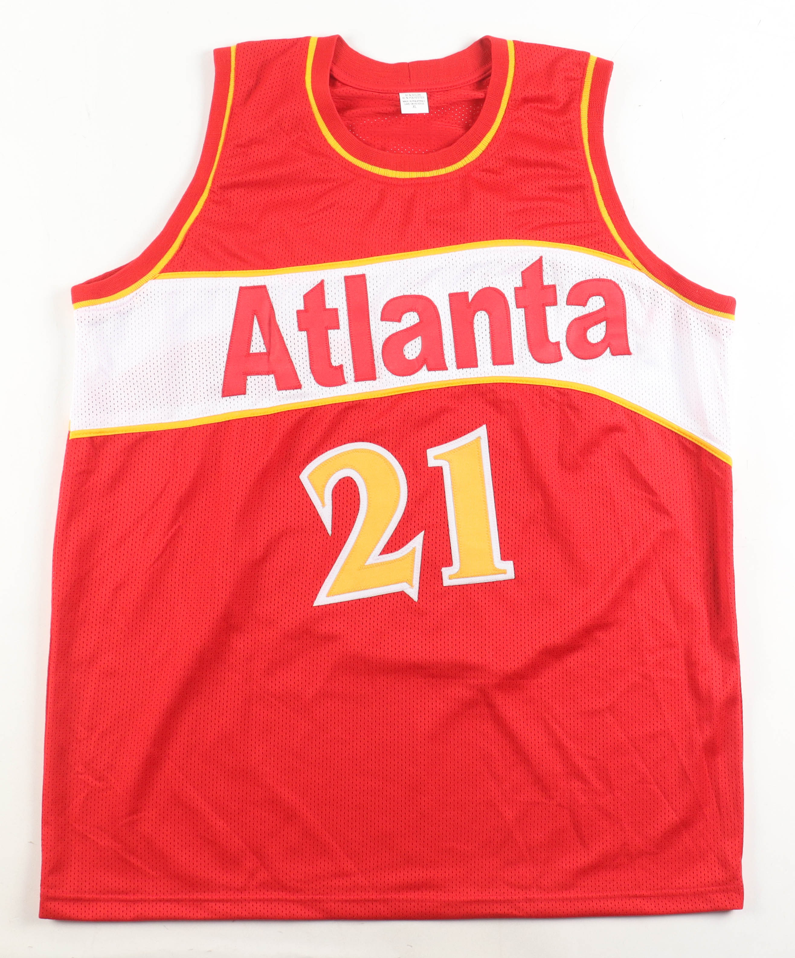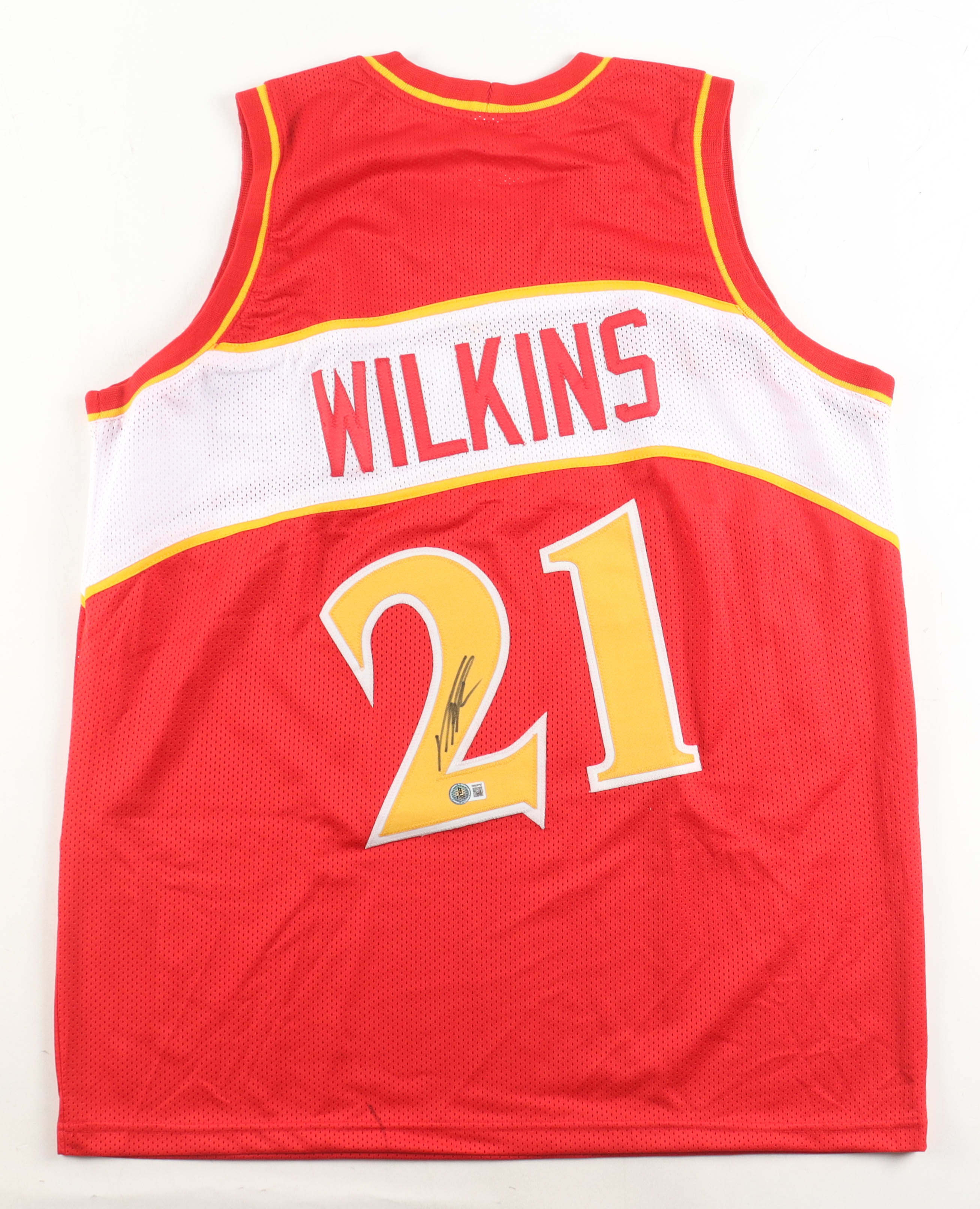 Custom jersey with everything sewn on, size XL. Hand-signed by Dominique Wilkins (HOF).
