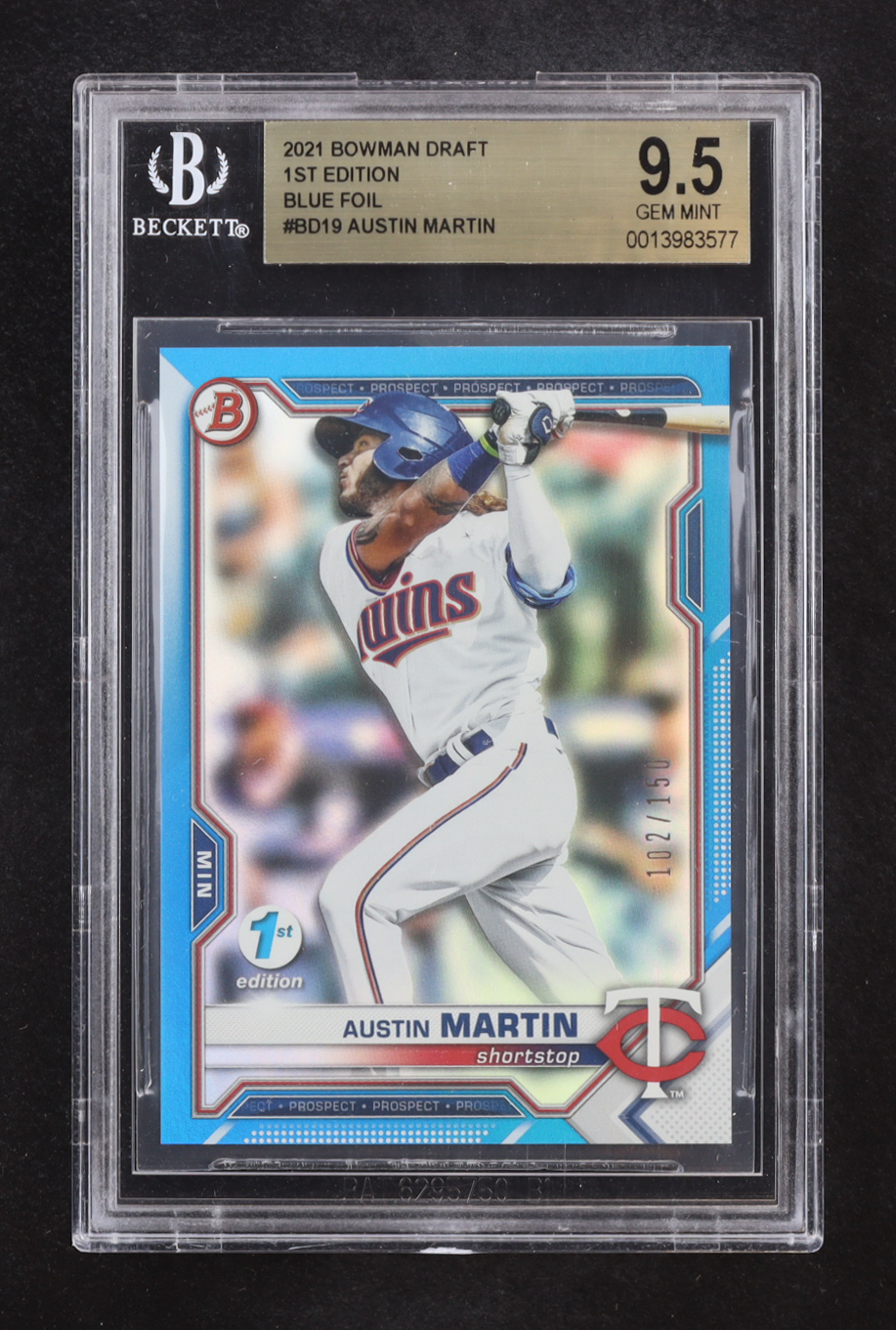 Austin Martin 2021 Bowman Draft 1st Edition Blue Foil #BD19 RC #102/150 (BGS 9.5)