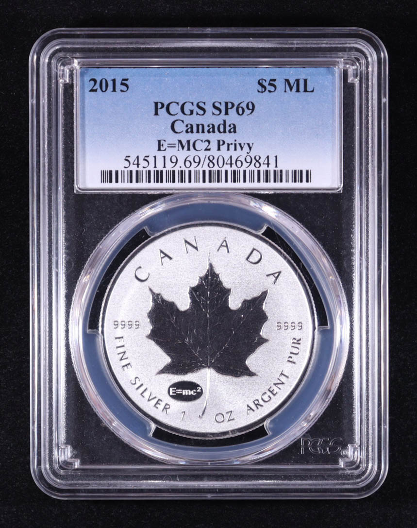 2015 Canada $5 Maple Leaf, E=MC² Privy - 1oz .9999 Fine Silver Coin (PCGS SP69)
