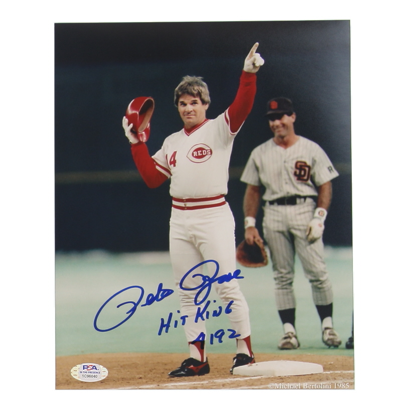 Pete Rose Signed Reds 8x10 Photo Inscribed "Hit King 4192" (PSA)
