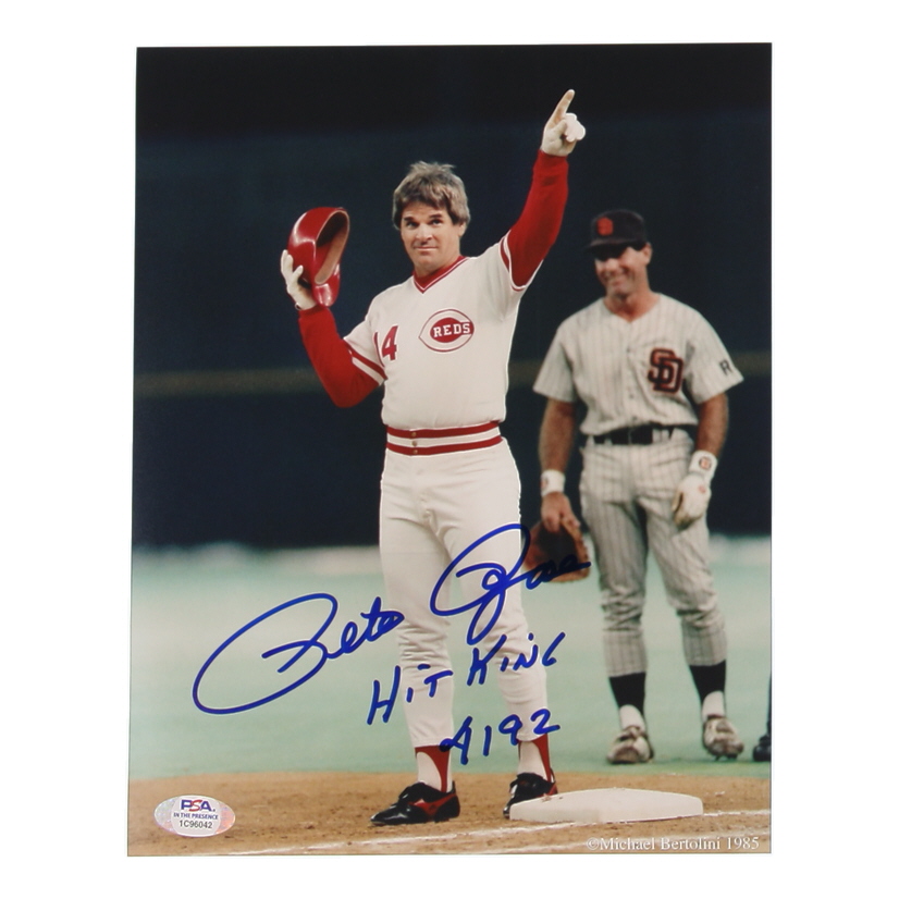 Pete Rose Signed Reds 8x10 Photo Inscribed "Hit King 4192" (PSA)