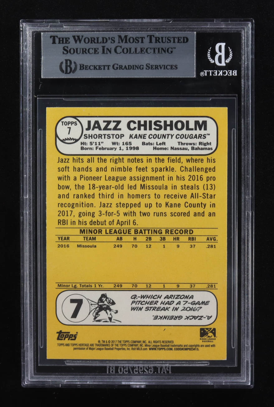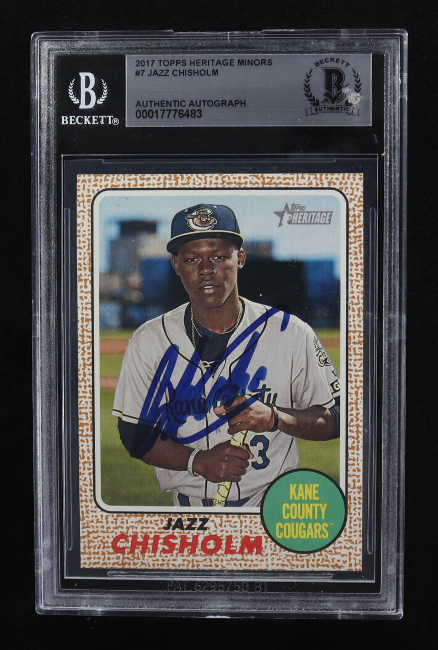 Jazz Chisholm Signed 2017 Topps Heritage Minors #7 RC (Beckett | Auto Grade BGS Authentic)