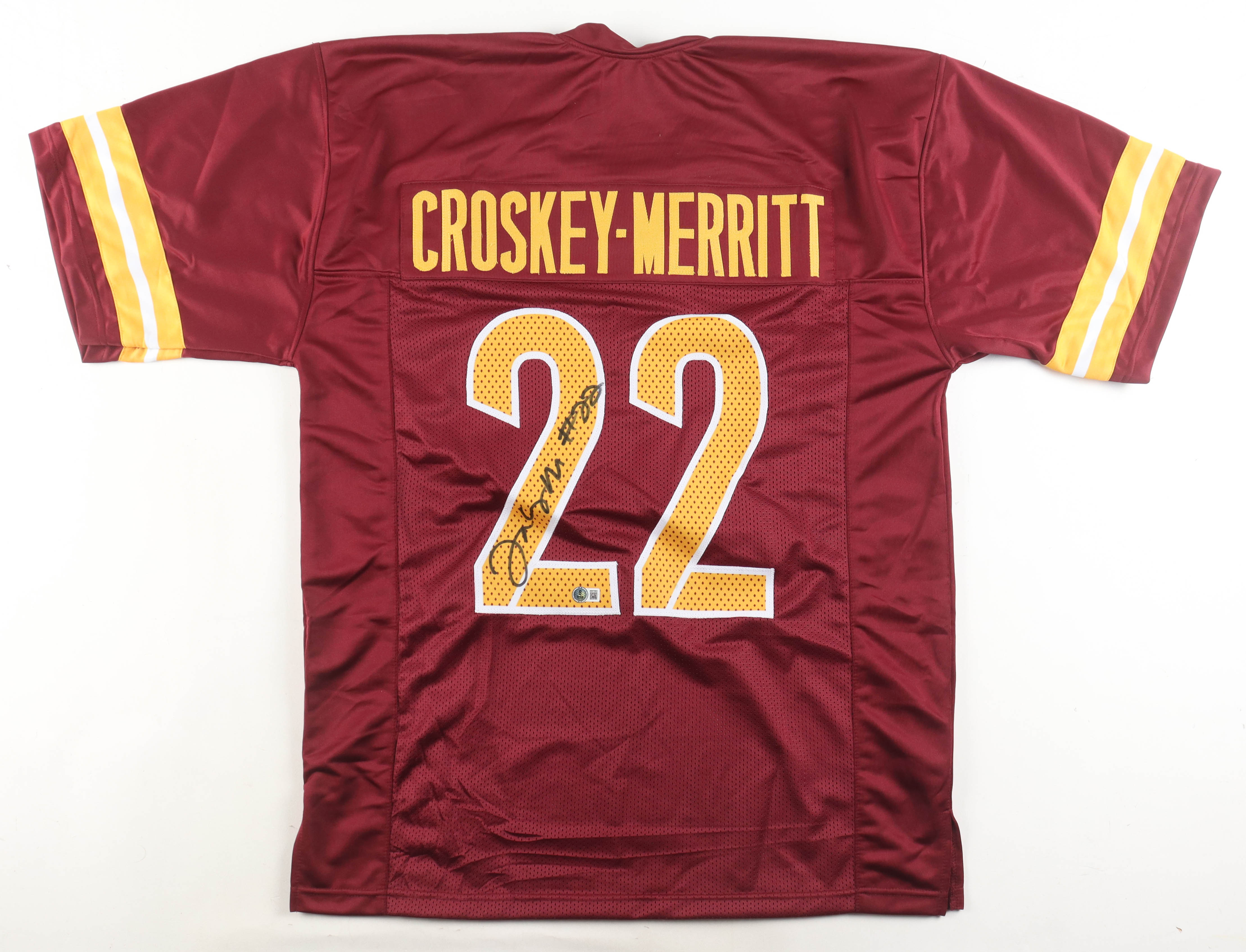 Custom jersey with everything sewn on, size XL. Hand-signed by Jacory Croskey-Merritt.