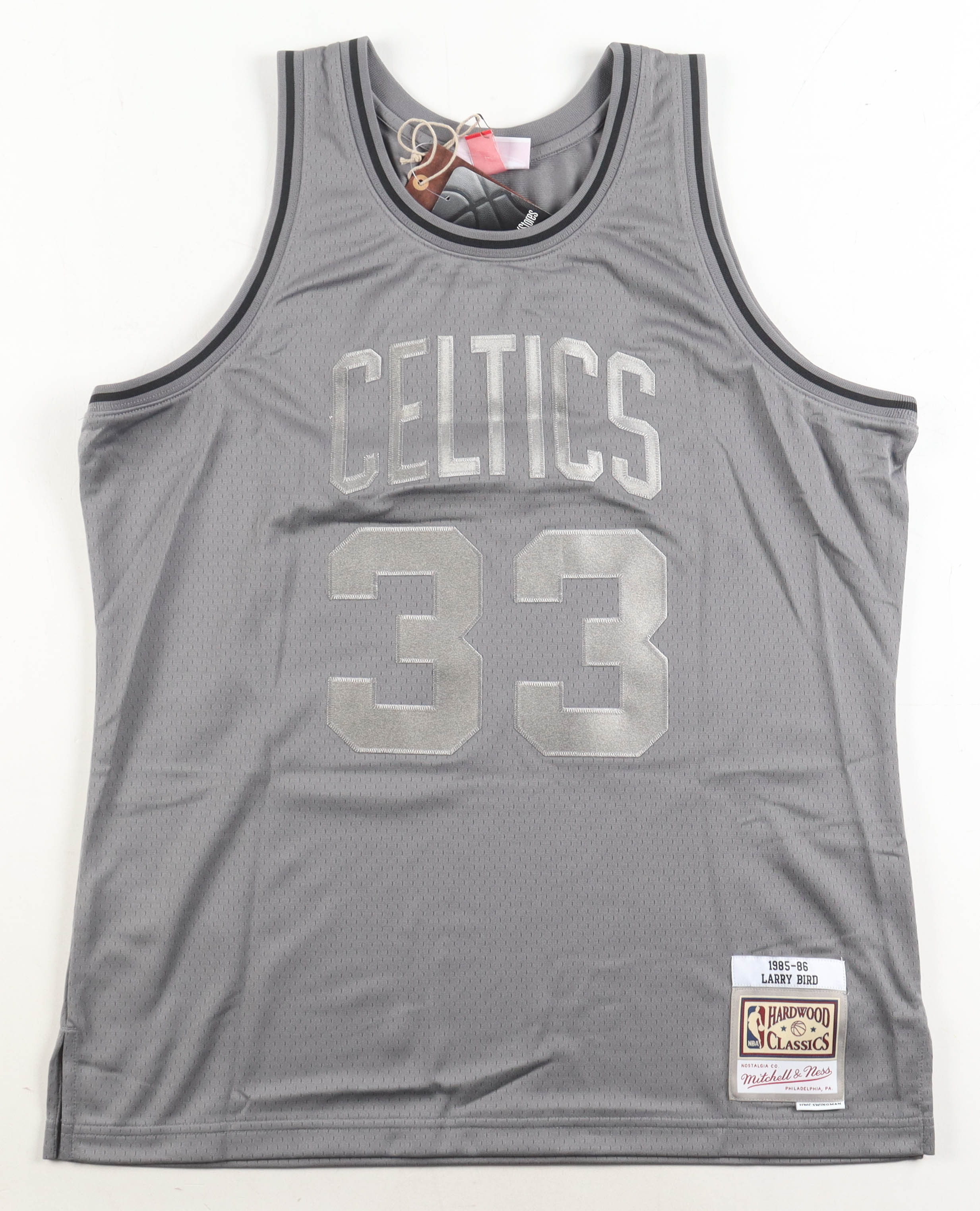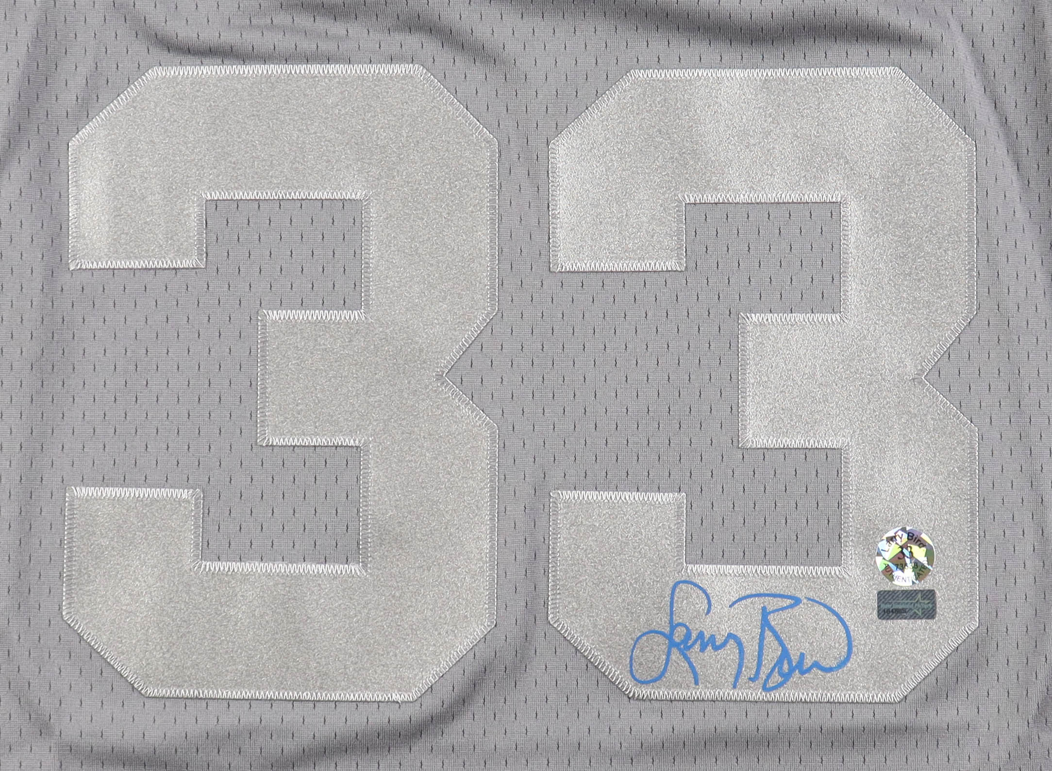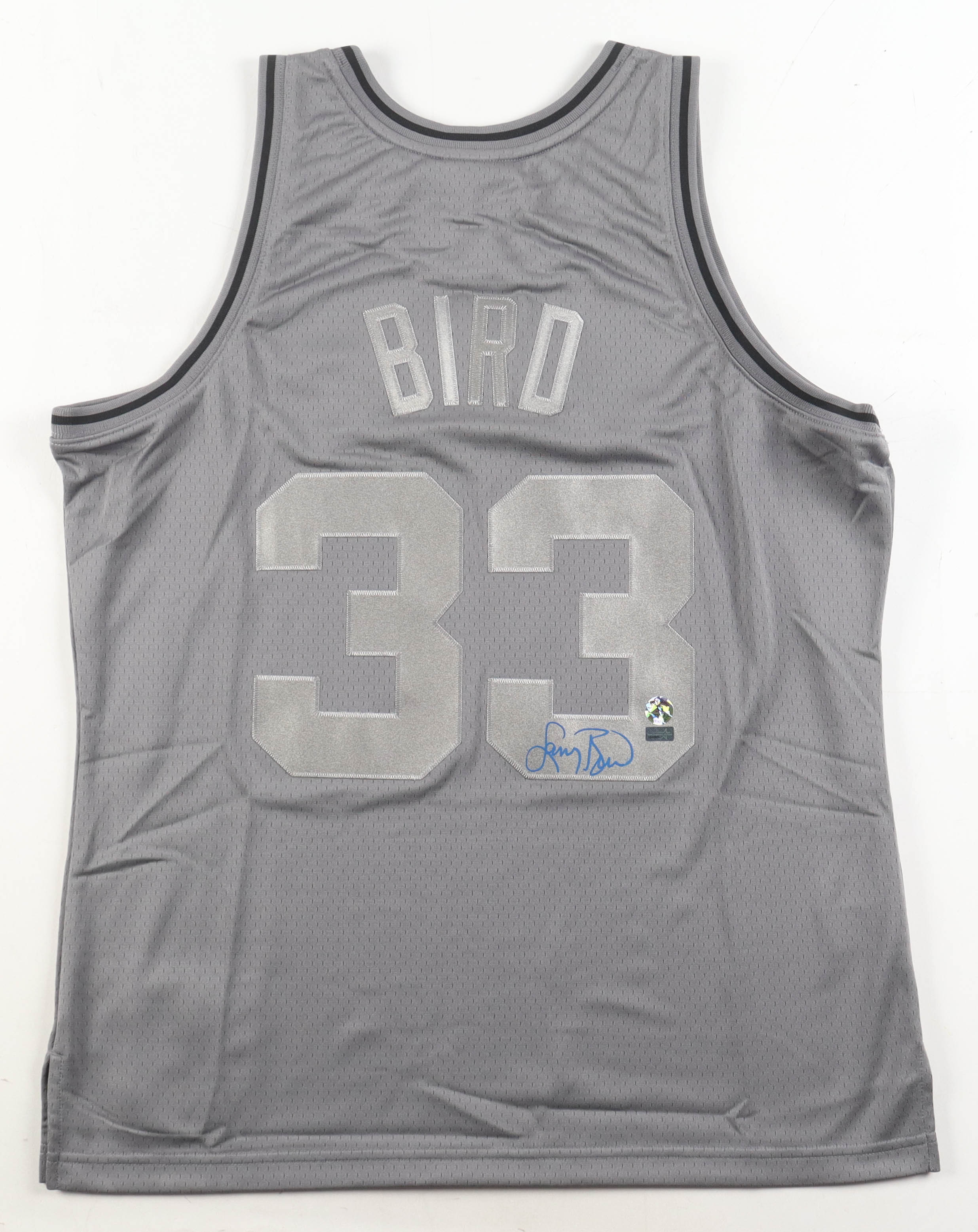 Mitchell & Ness jersey with everything sewn on, size L. Hand-signed by Larry Bird (Boston Celtics, HOF).