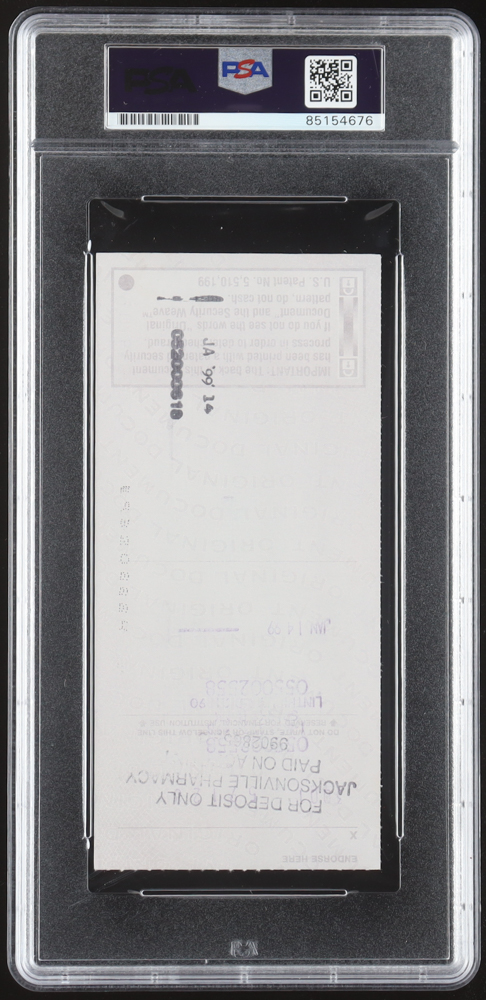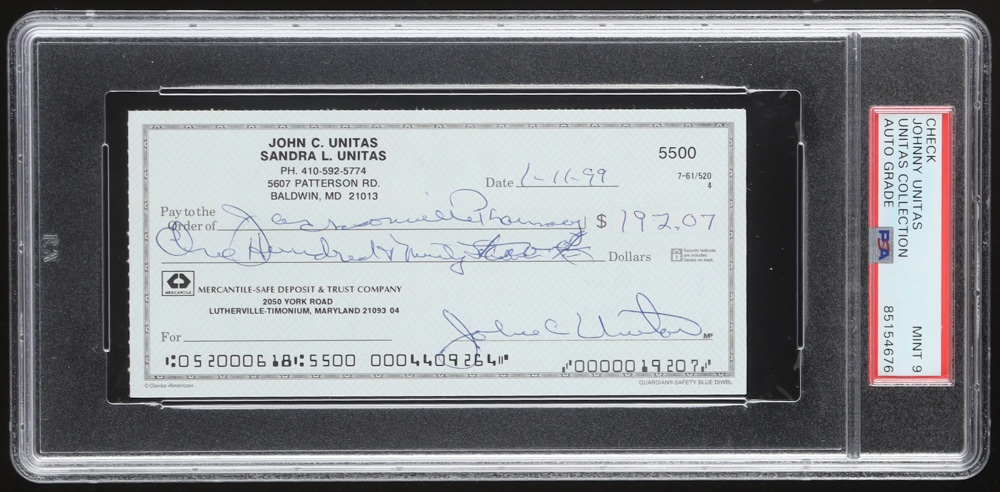 Johnny Unitas Signed 1999 Personal Check (PSA | Autograph Graded 9)