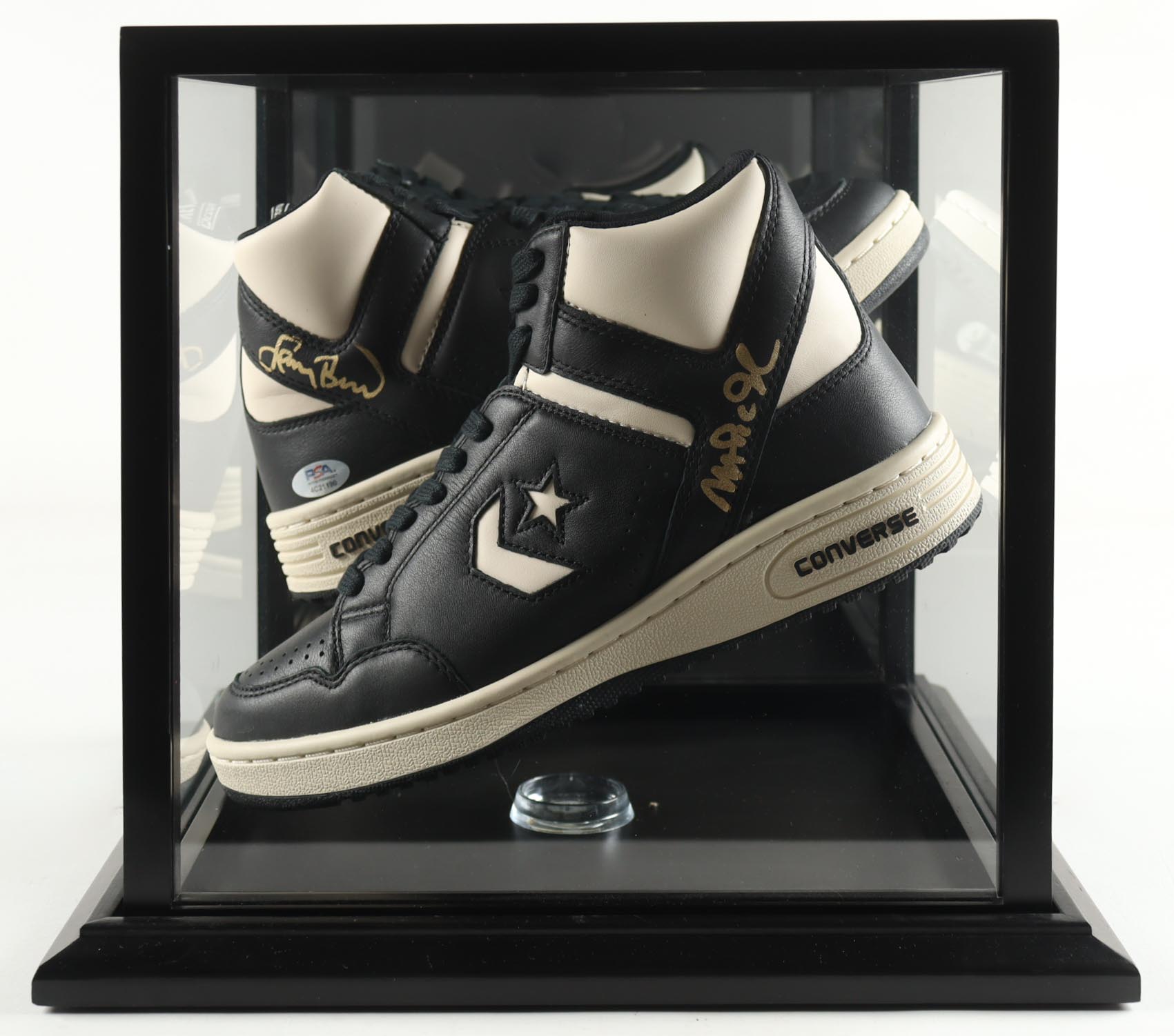 Magic Johnson & Larry Bird Signed Set of (2) Converse Weapon Basketball Shoes with Display Case (PSA & Beckett)