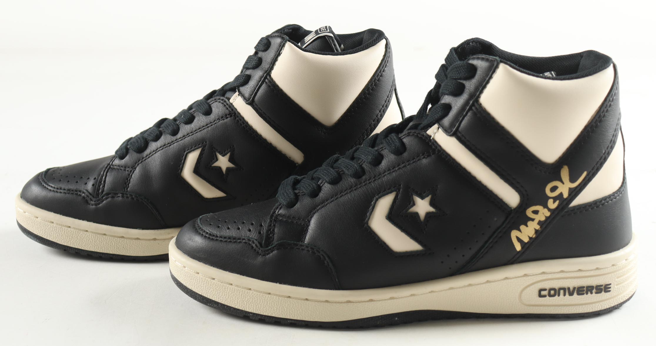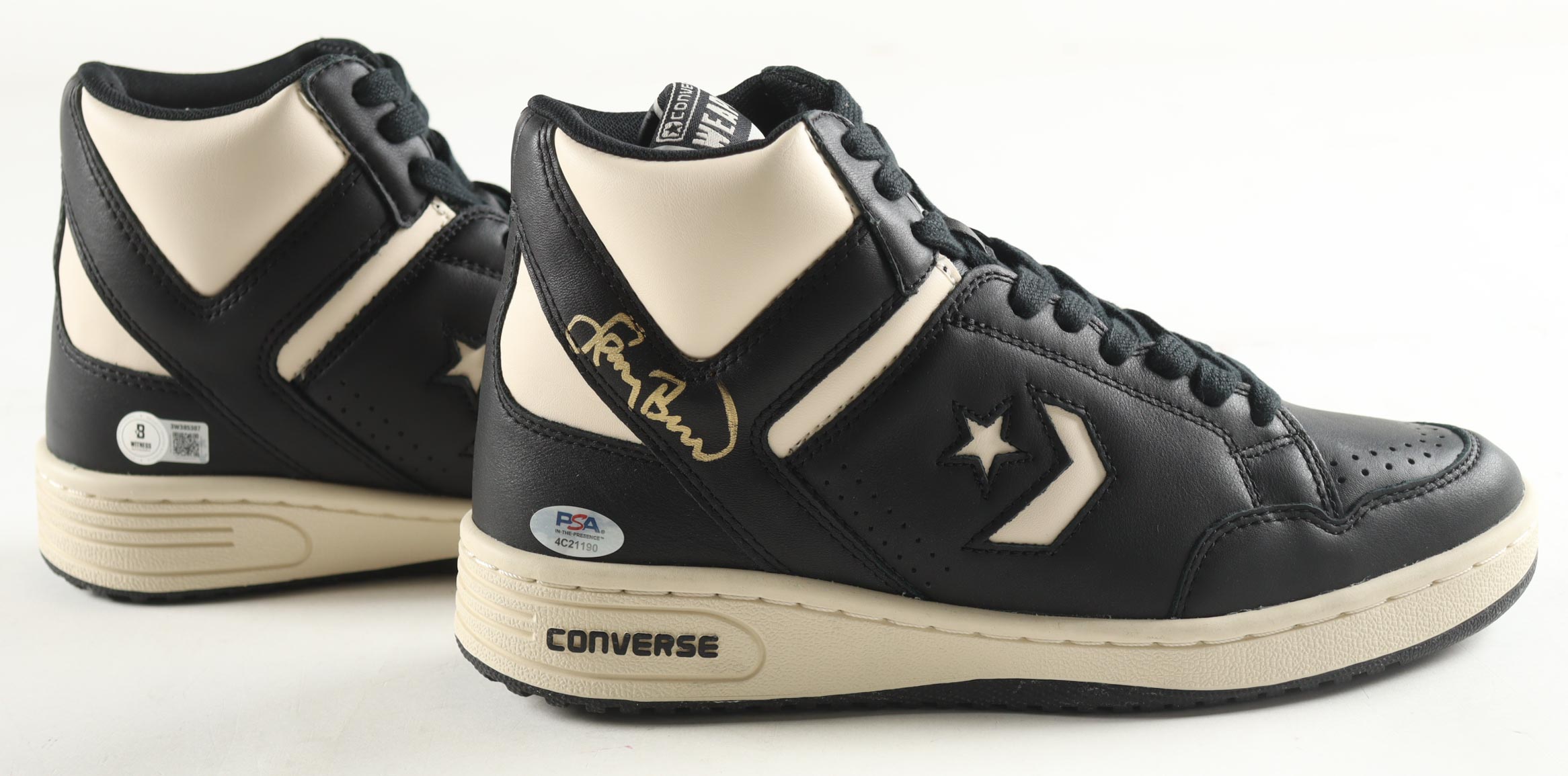 Set of (2) Converse Weapon Leather Basketball Shoes have been hand-signed by Magic Johnson (Los Angeles Lakers, HOF) and Larry Bird (Boston Celtics, HOF). Please note that the display case is included in the listing as shown above.