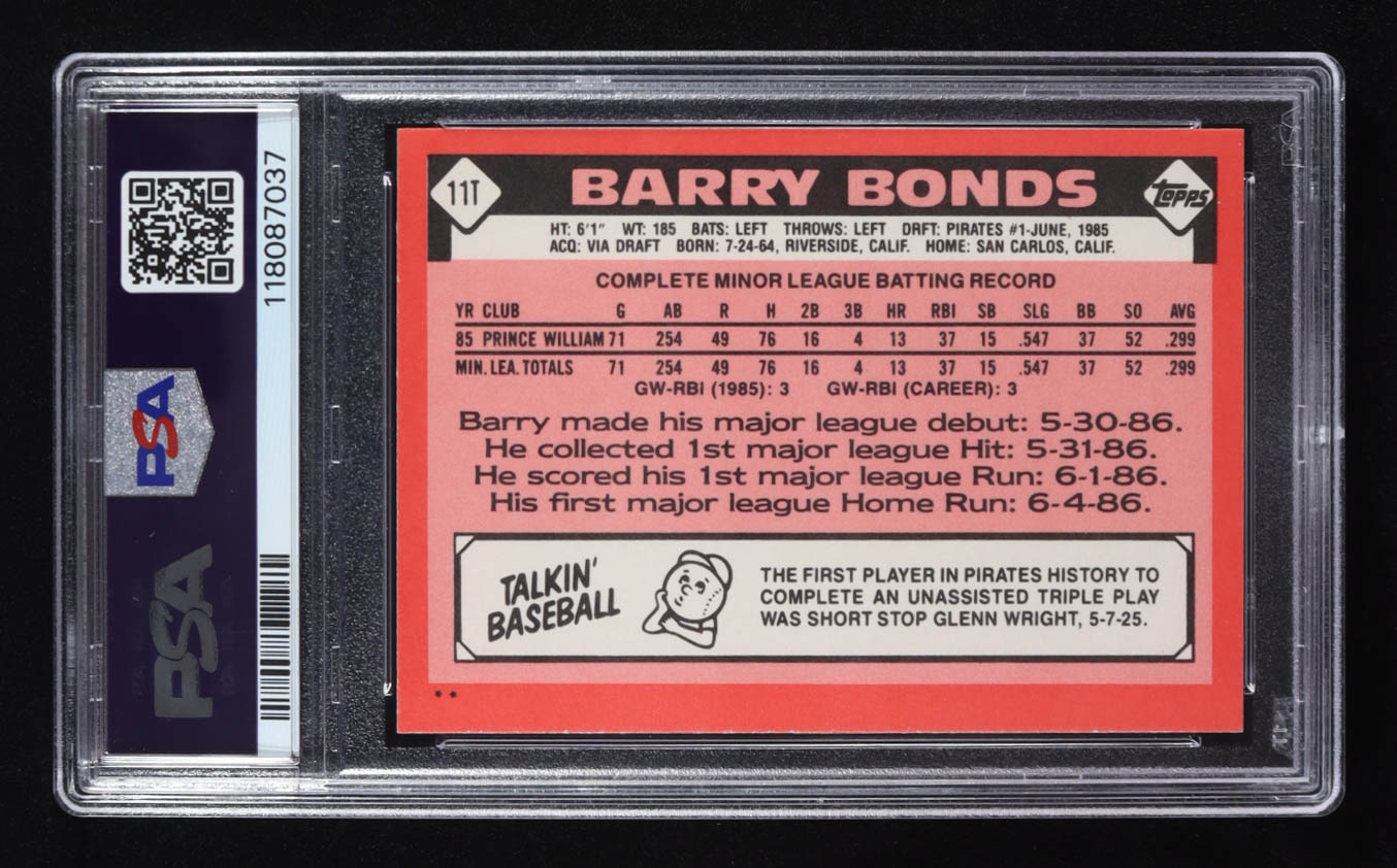 Barry Bonds 1986 Topps Traded #11T RC (PSA 9)