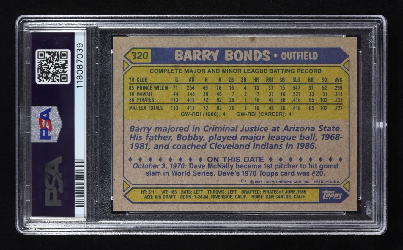 Barry Bonds 1987 Topps #320 RC (PSA 8)