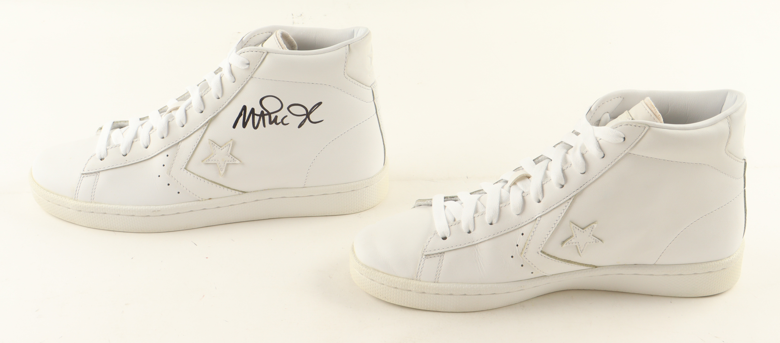 Set of (2) Converse All-Star Basketball Shoes have been hand-signed by Magic Johnson (Los Angeles Lakers, HOF) and Larry Bird (Boston Celtics, HOF).