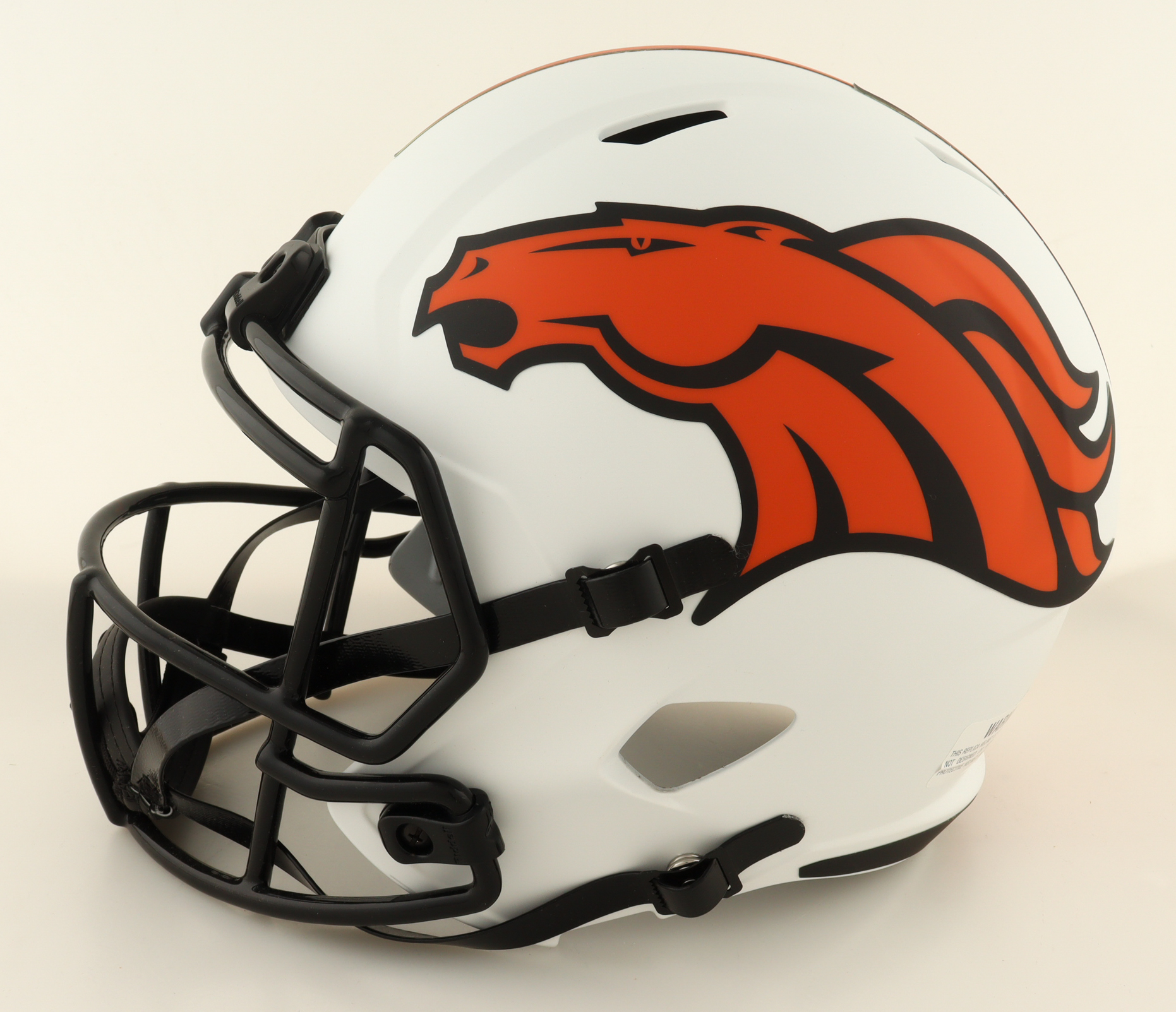 Riddell Denver Broncos full-size replica Lunar Eclipse Alternate Speed helmet. Hand-signed and inscribed by Marvin Mims Jr.