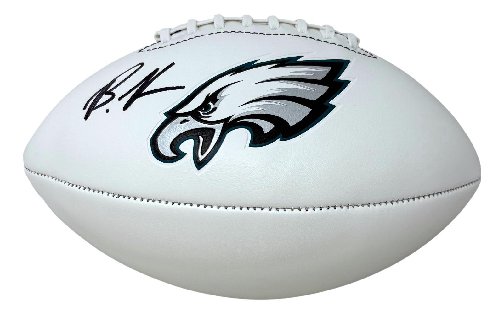 Philadelphia Eagles logo football has been hand-signed by Brandon Graham.