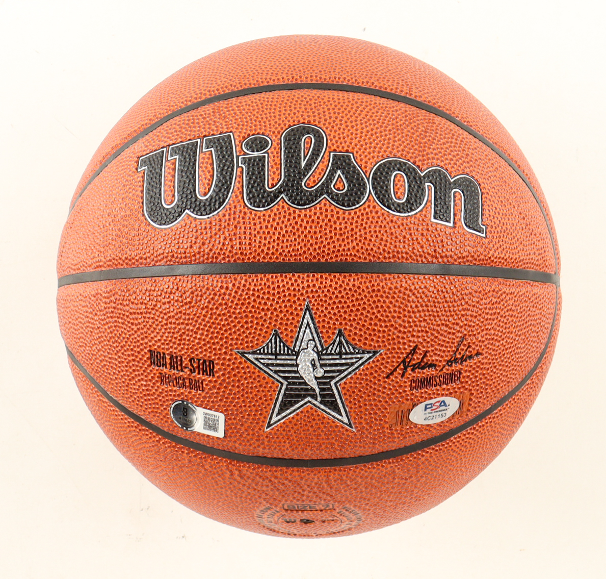 Magic Johnson & Larry Bird Signed NBA Silver All-Star Logo Basketball with Display Stand (Beckett & PSA)