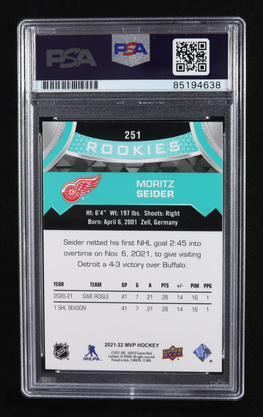 Moritz Seider Signed 2021-22 Upper Deck Series MVP Rookies Trading Card Auto #251 RC (PSA | Autograph Grade PSA Authentic)