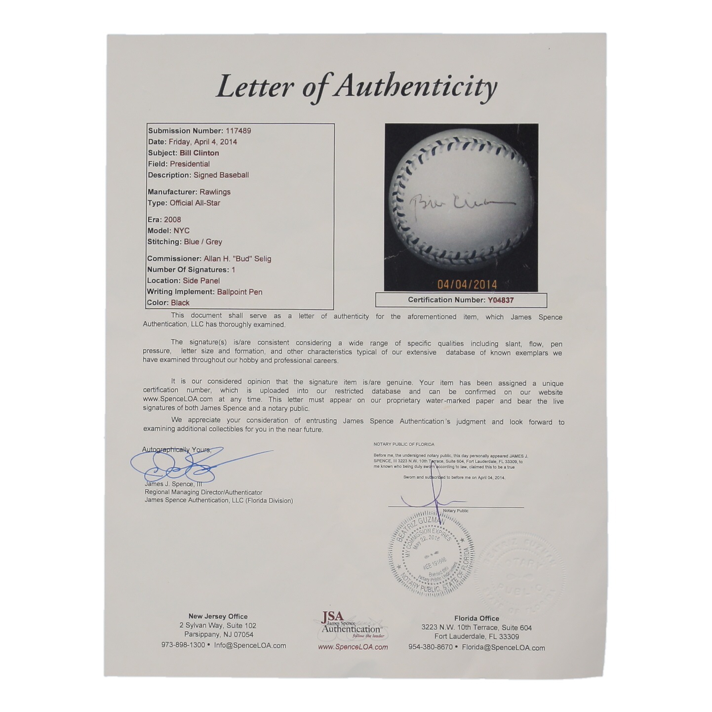 Bill Clinton Signed 2008 All-Star Game Logo Baseball (JSA)