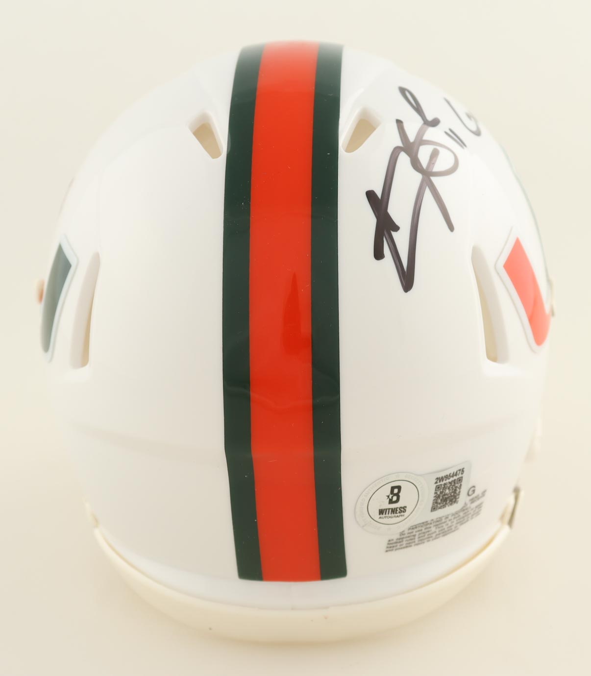 Riddell Miami Hurricanes Speed mini helmet. Hand-signed and inscribed by Carson Beck.