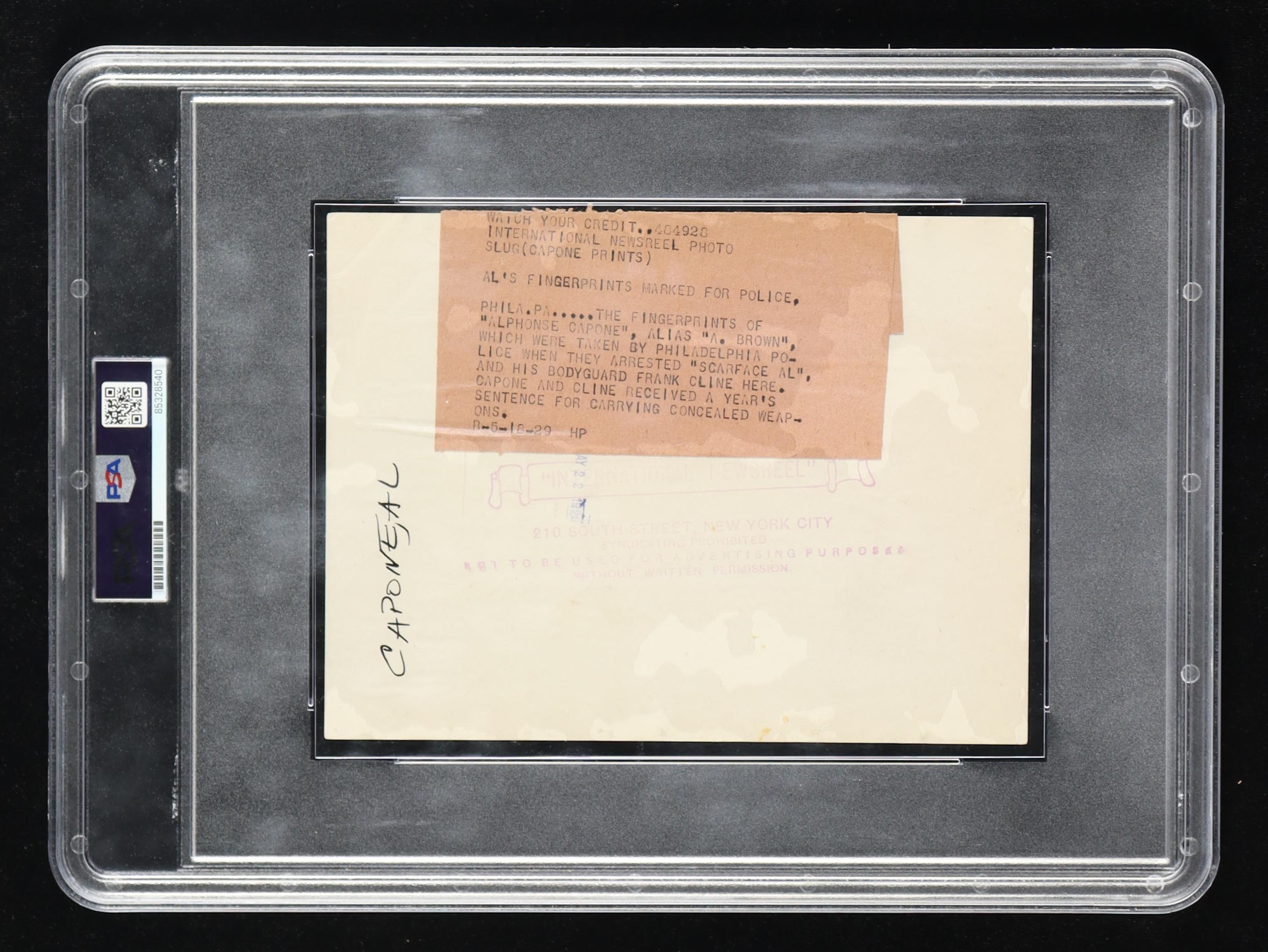 1929 International Newsreel Photo measures approximately 6" x 8" in size and features Alphonse "Scarface" Gabriel Capone (D. 1947) fingerprints.