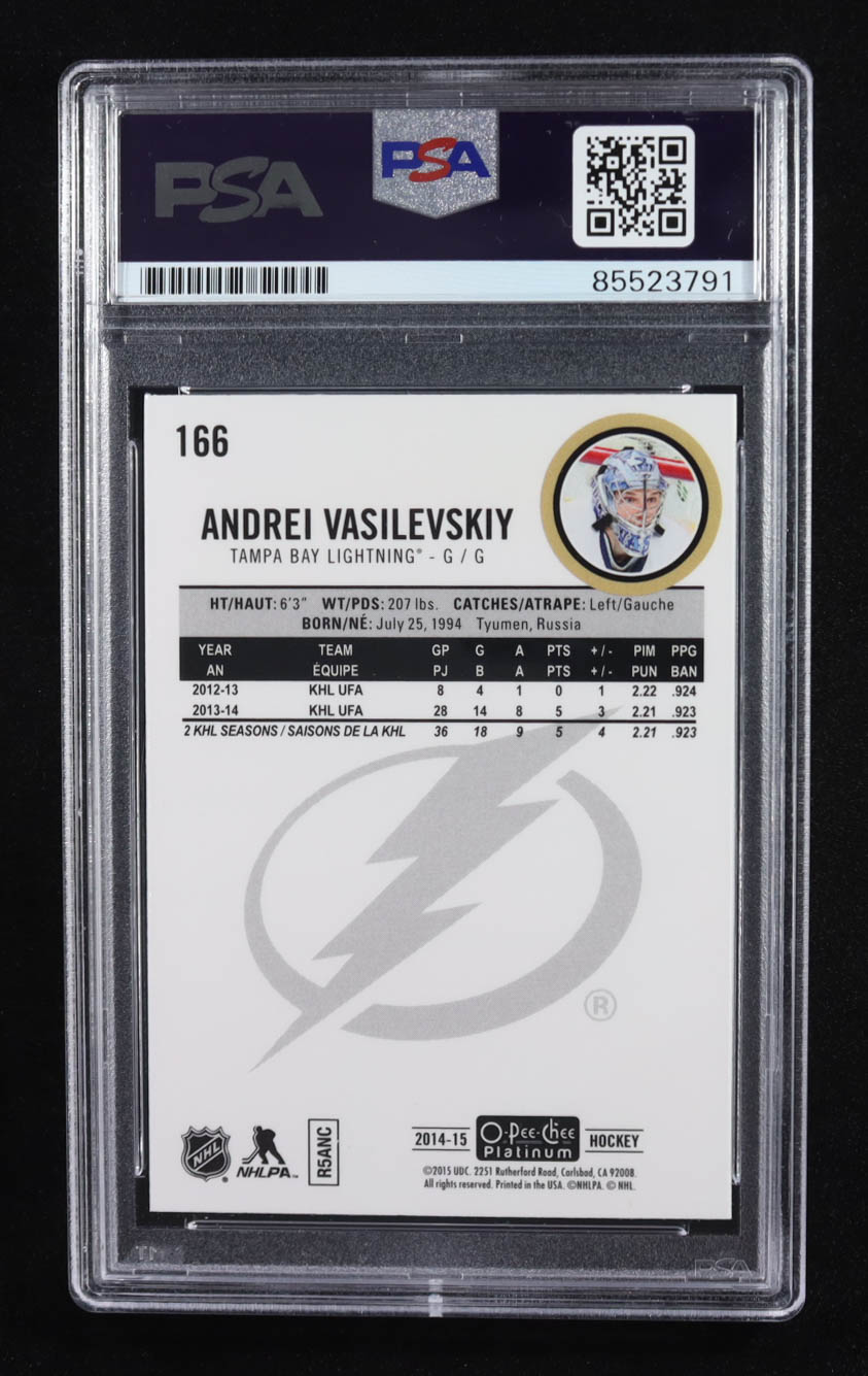 Andrei Vasilevskiy Signed 2014-15 O-Pee-Chee Platinum Trading Card Auto #166 RC (PSA | Autograph Grade PSA Authentic)