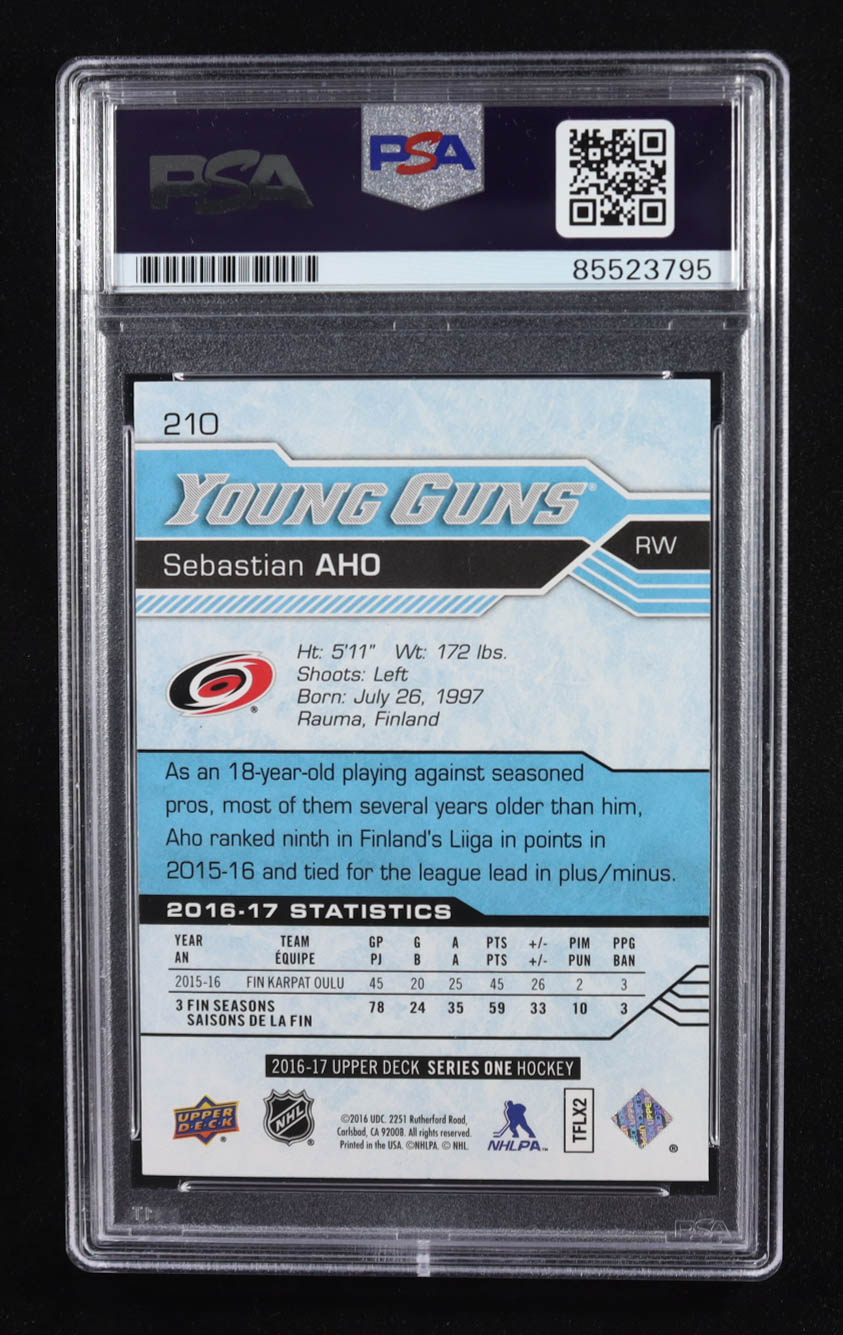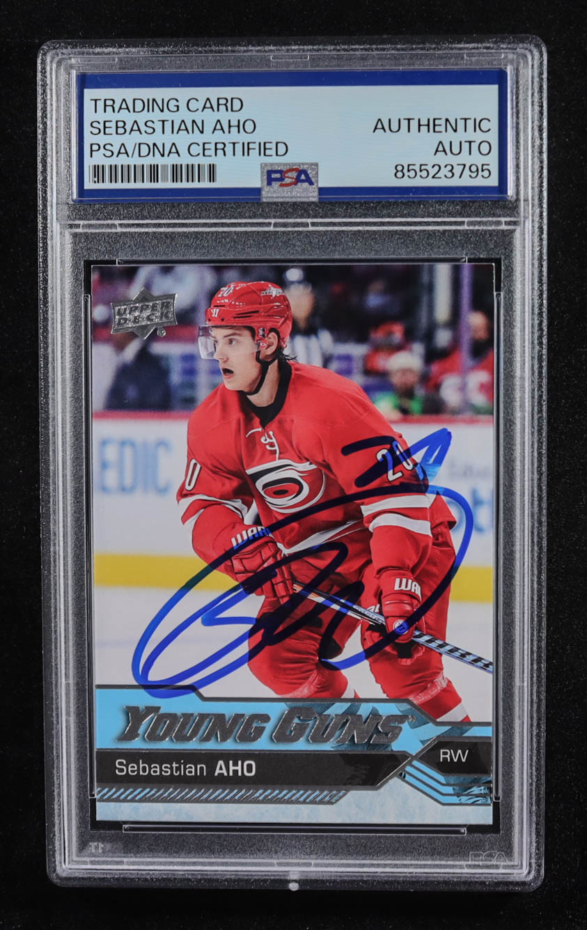 Sebastian Aho Signed 2016-17 Upper Deck Series One Trading Card Auto #210 RC (PSA | Autograph Grade PSA Authentic)