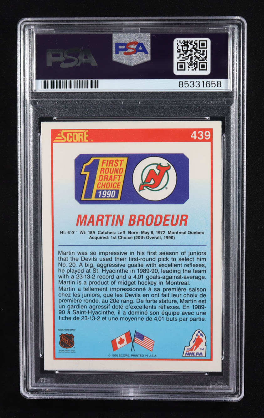 Martin Brodeur Signed 1990 Score First Round Draft Choice Trading Card Auto #439 RC (PSA | Autograph Grade PSA Authentic)