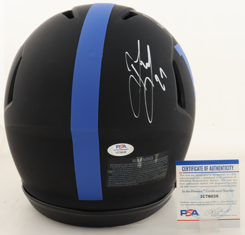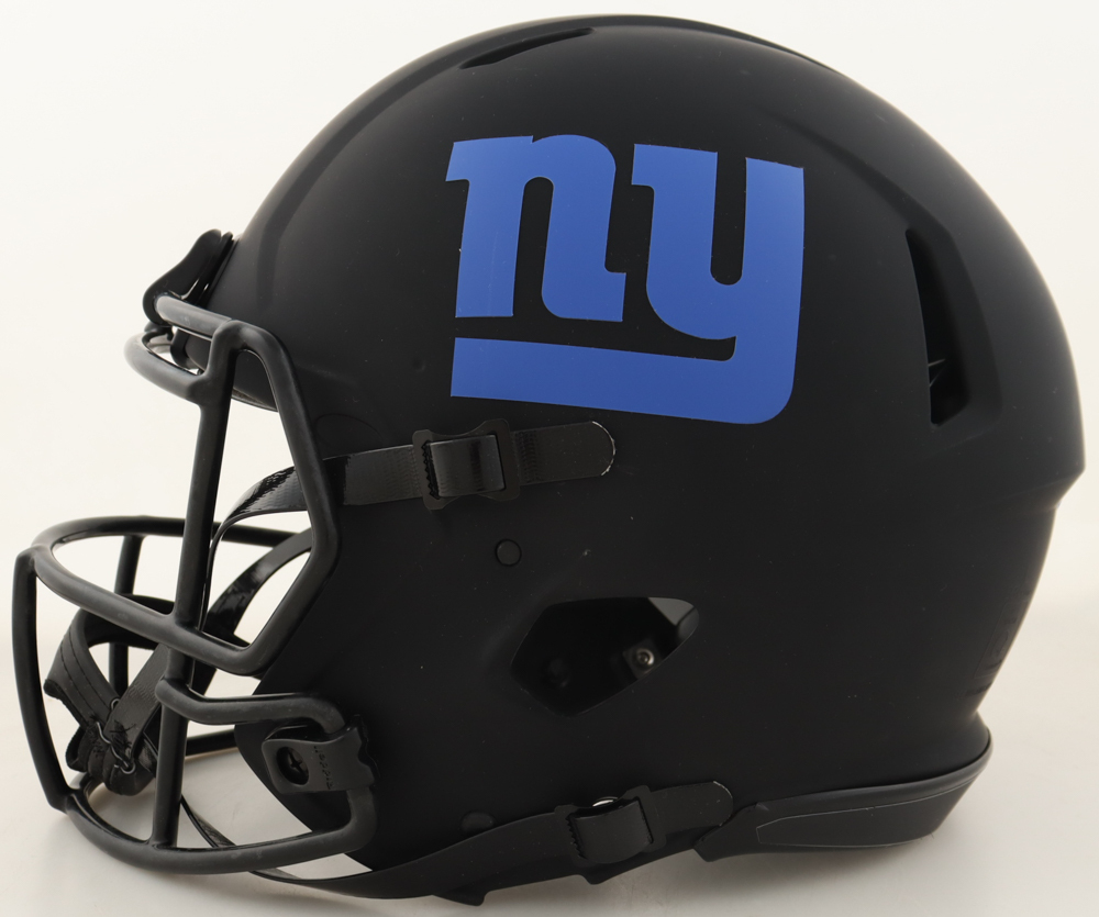 Riddell New York Giants Full-Size Authentic On-Field Eclipse Alternate Speed helmet. Hand-signed and inscribed by Brandon Jacobs, Derrick Ward and Ahmad Bradshaw.