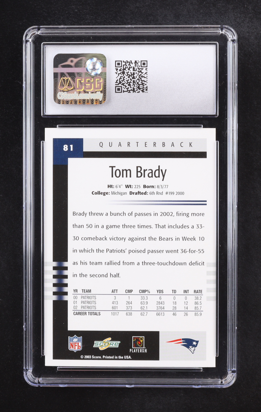 Card has been graded CGC 10. Please see photos for details regarding the condition of the card (New England Patriots).