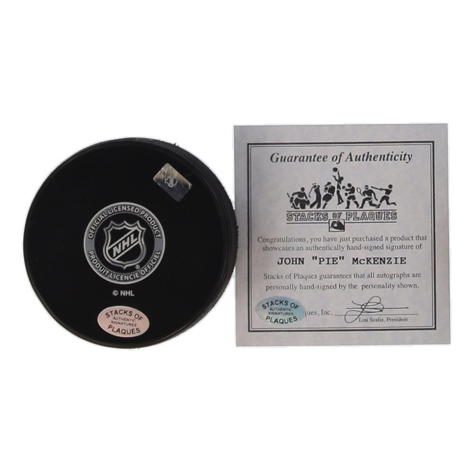 John "Pie McKenzie Signed Bruins Logo Hockey Puck (SoP)