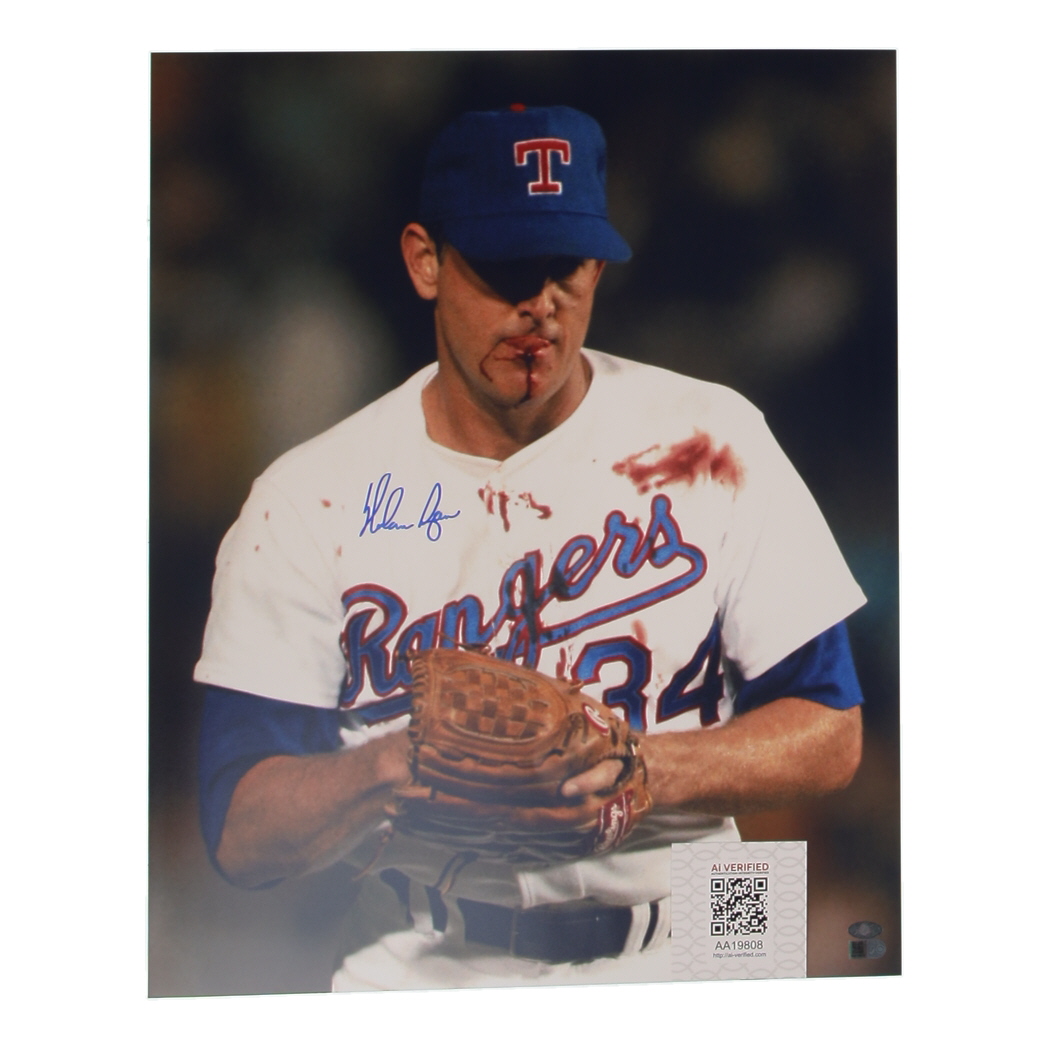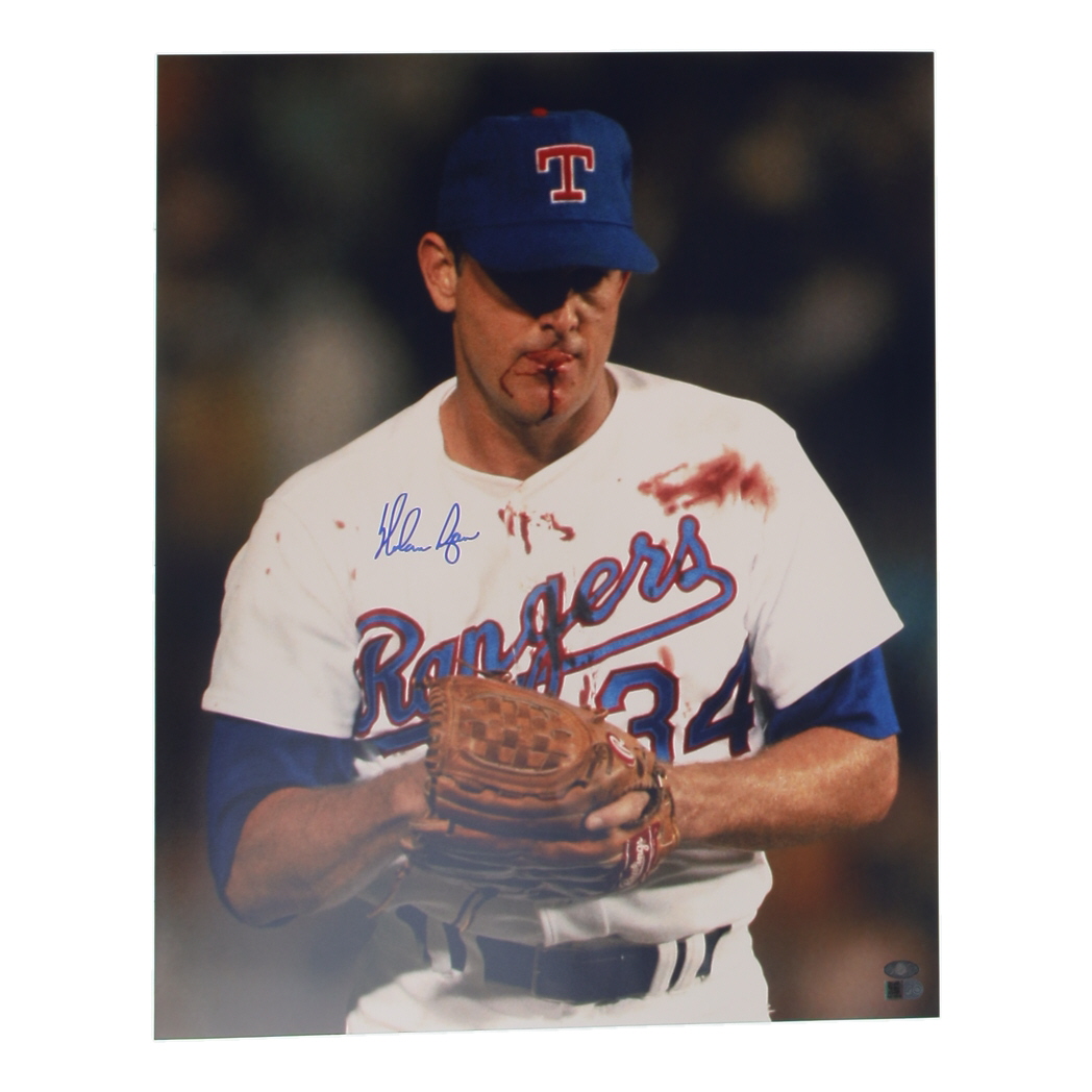 Photo measures 16" x 20” in size and has been hand-signed by Nolan Ryan (Texas Rangers, HOF).