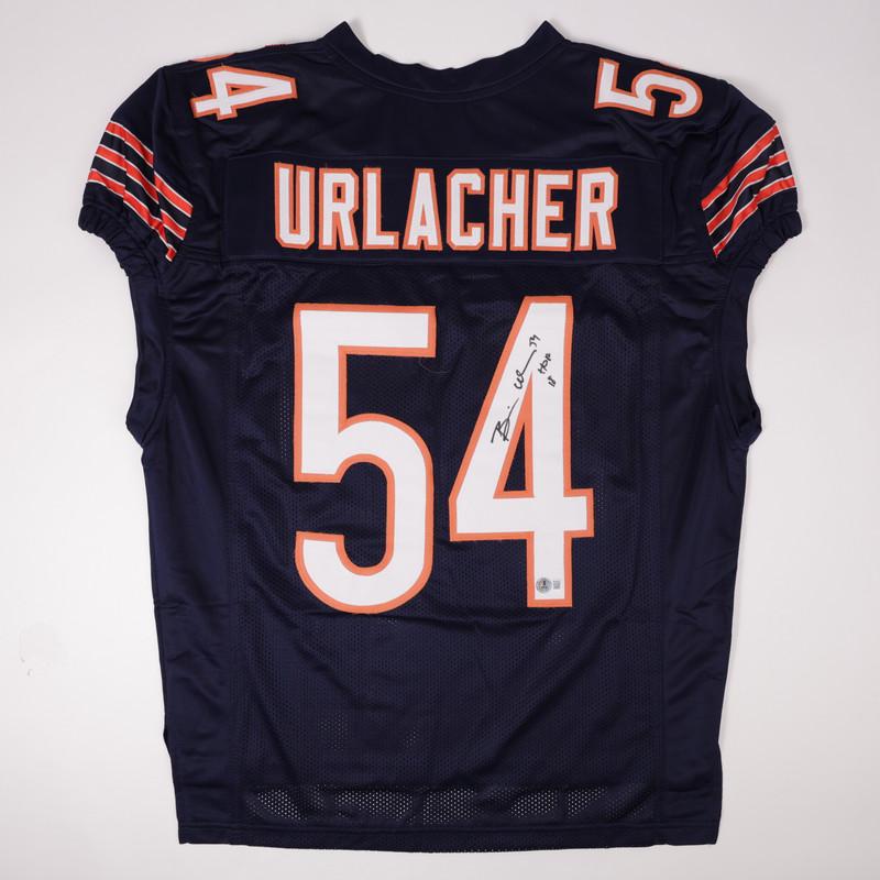 Custom jersey with everything sewn on, size XL. Hand-signed and inscribed by Brian Urlacher (HOF).