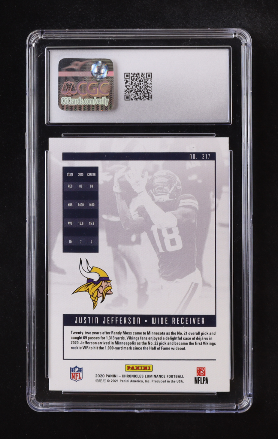 Justin Jefferson 2020 Panini Luminance #217 RC / CHRONICLES (CGC 10)