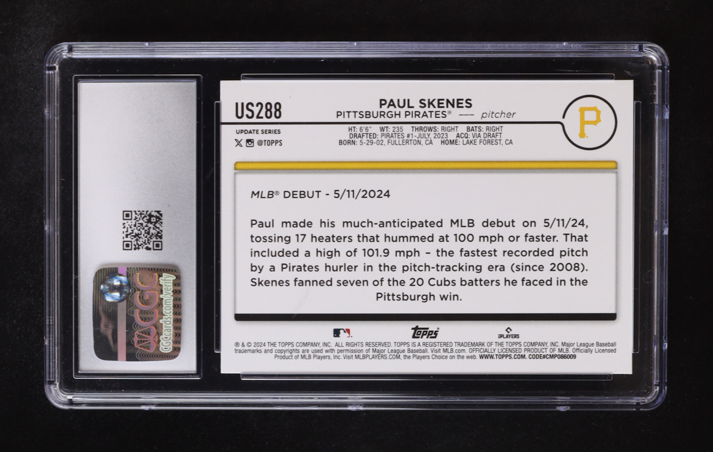 Paul Skenes 2024 Topps Update #US288 RC (CGC 10)