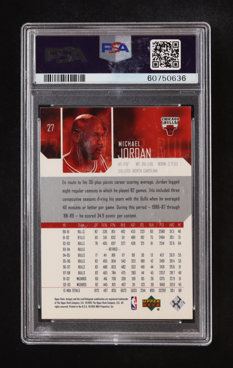 Michael Jordan 2003-04 Upper Deck #27 (PSA 9)