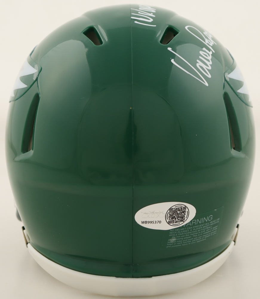 Riddell Philadelphia Eagles throwback alternate speed mini helmet has been hand-signed and inscribed by Vince Papale.