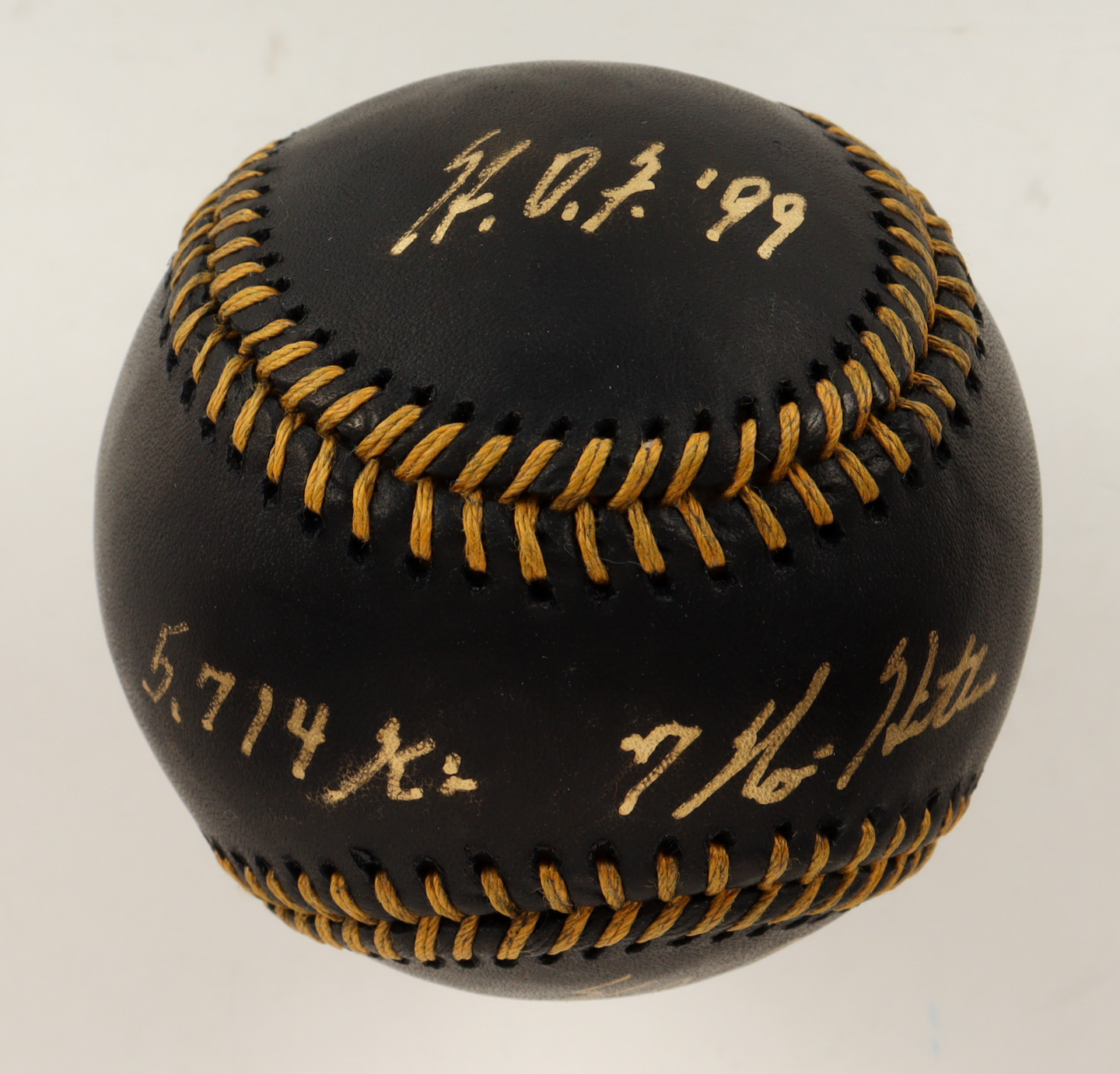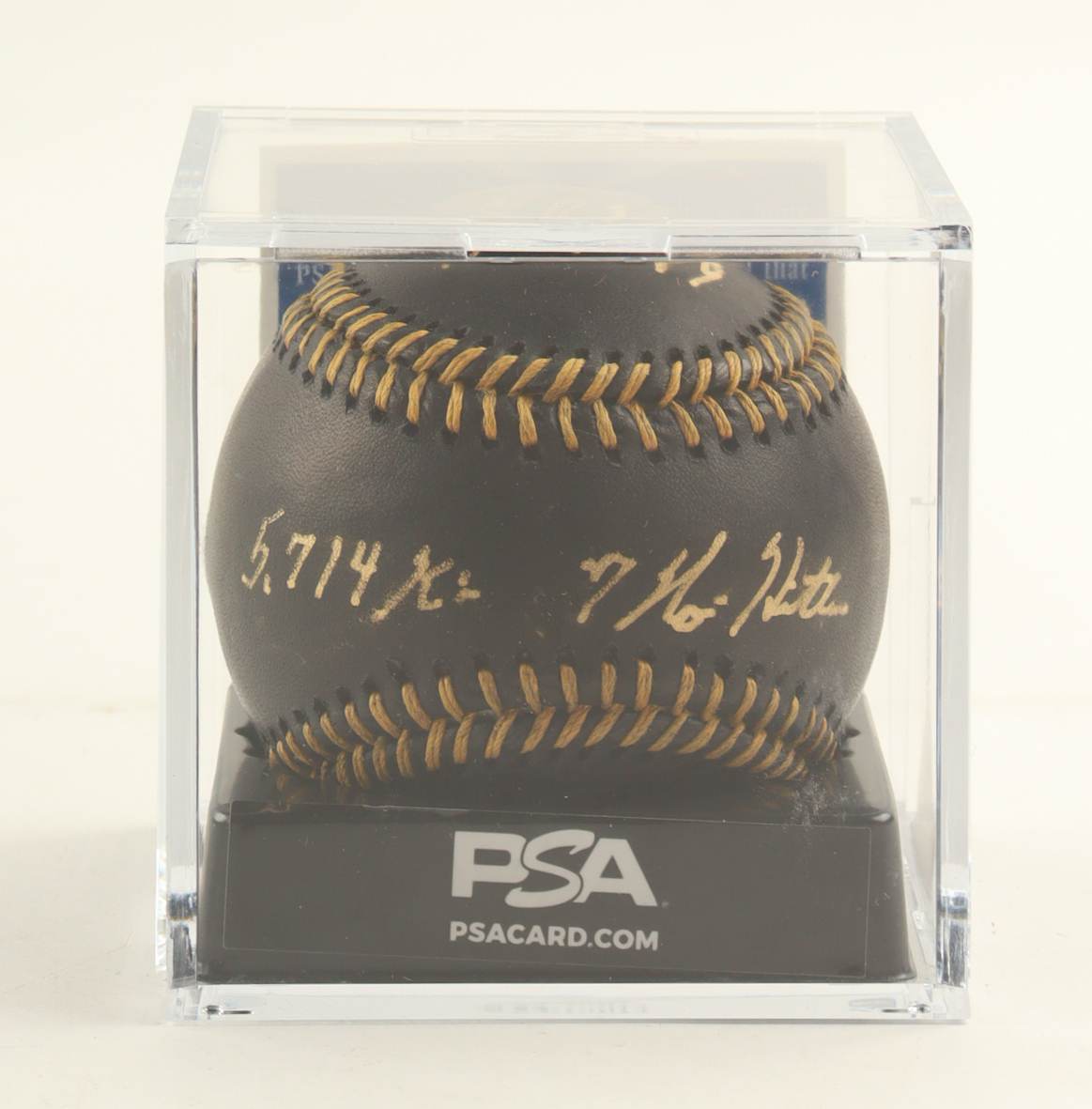 Nolan Ryan Signed OML Black Leather Baseball with Display Case Inscribed "7 No-Hitters" & "H.O.F. '99" & "5,714 K's" (PSA 8.5)