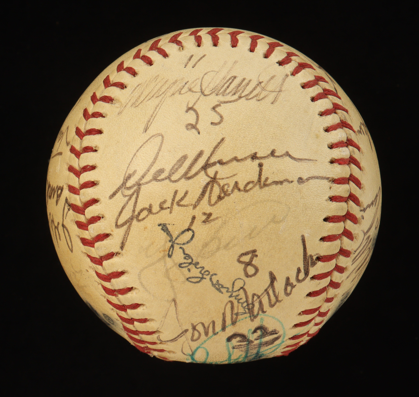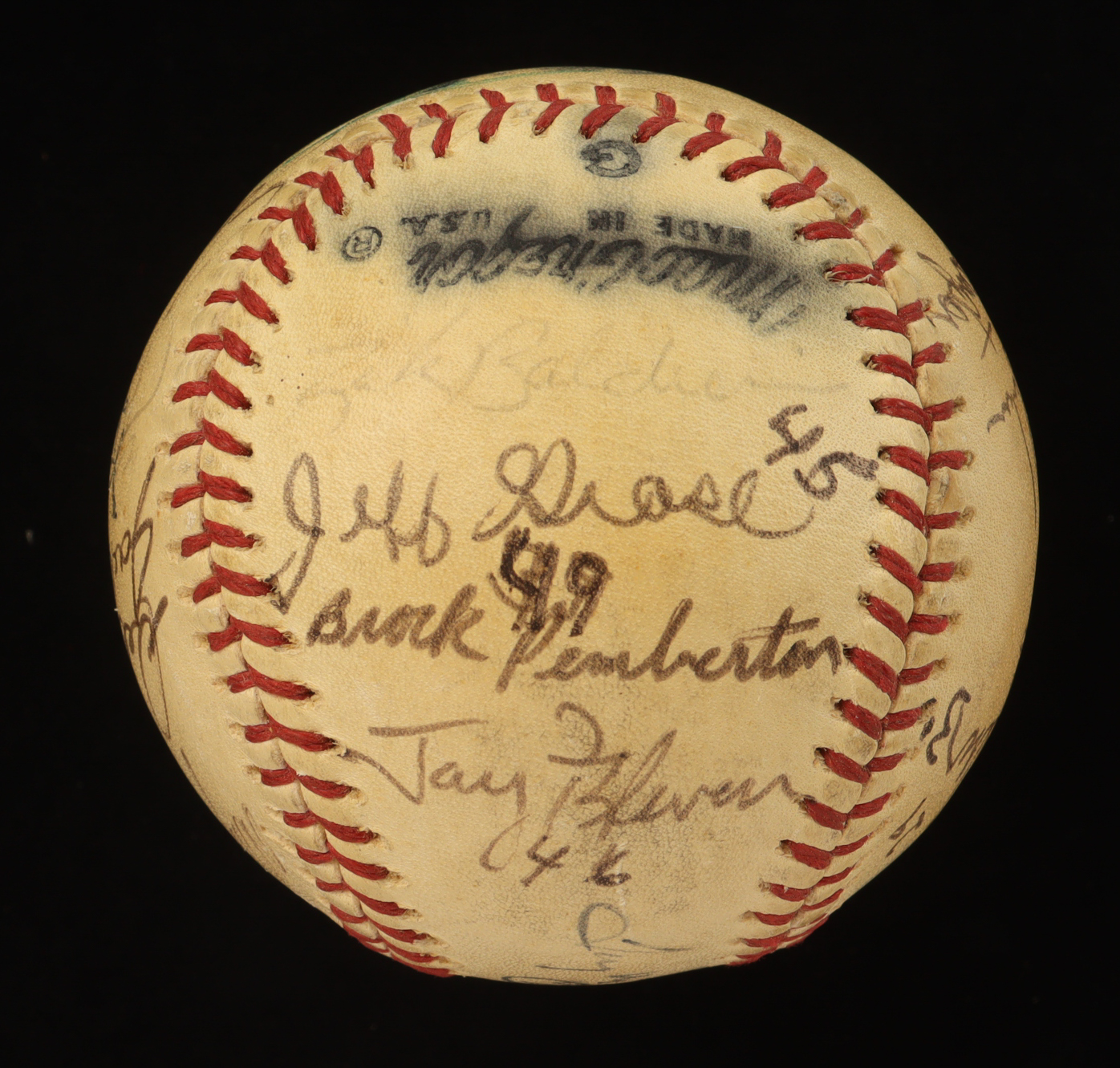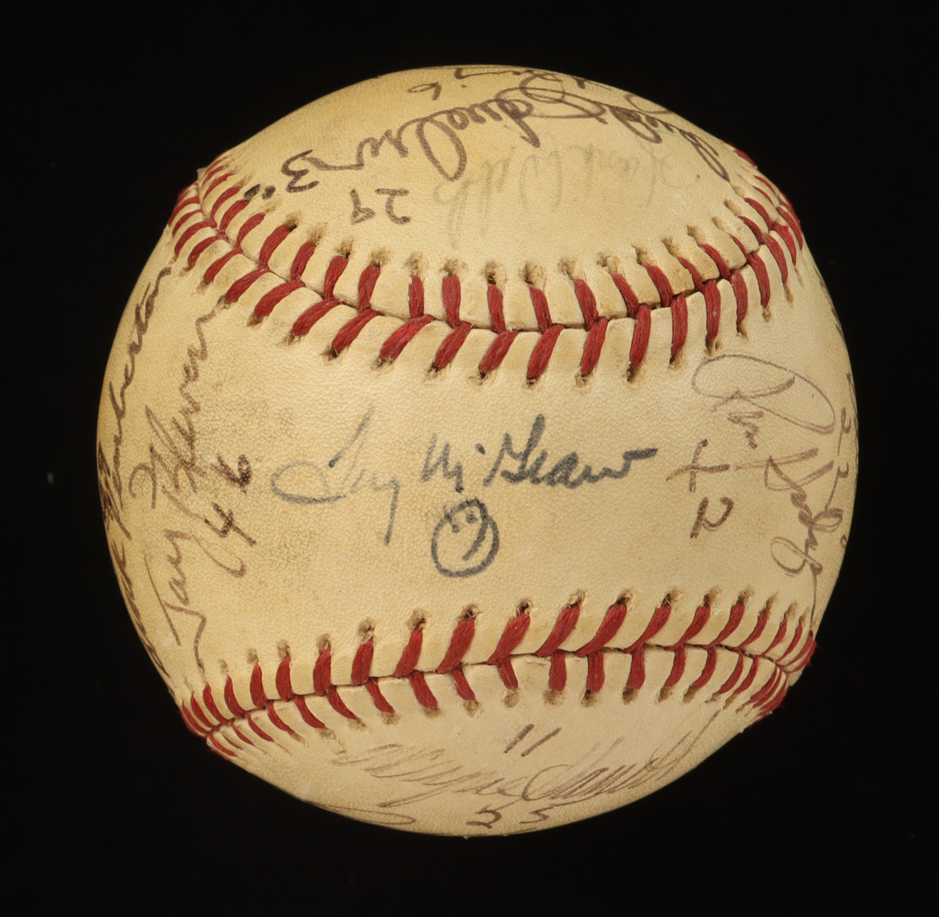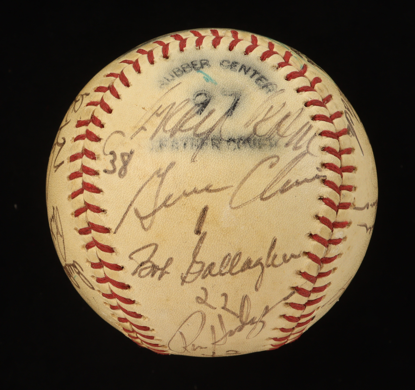 Official International National League baseball. Hand-signed by (20) with Tug McGraw, Hank Webb, Bud Harrelson, Rich Puig, Harry Parker, Ike Hampton, Wayne Garrett, Del Unser, Jack Heidmann, Jon Matlack, Rusty Staub, Jerry Cram, Gene Clines, Bob Gallagher, Ron Hodges, Rick Baldwin, Jeff Grose, Brock Pemberton and Yogi Berra (D. 2015, New York Yankees, HOF). Note that the display case is included in the listing as shown above and the item and signatures show signs of fading and natural toning.