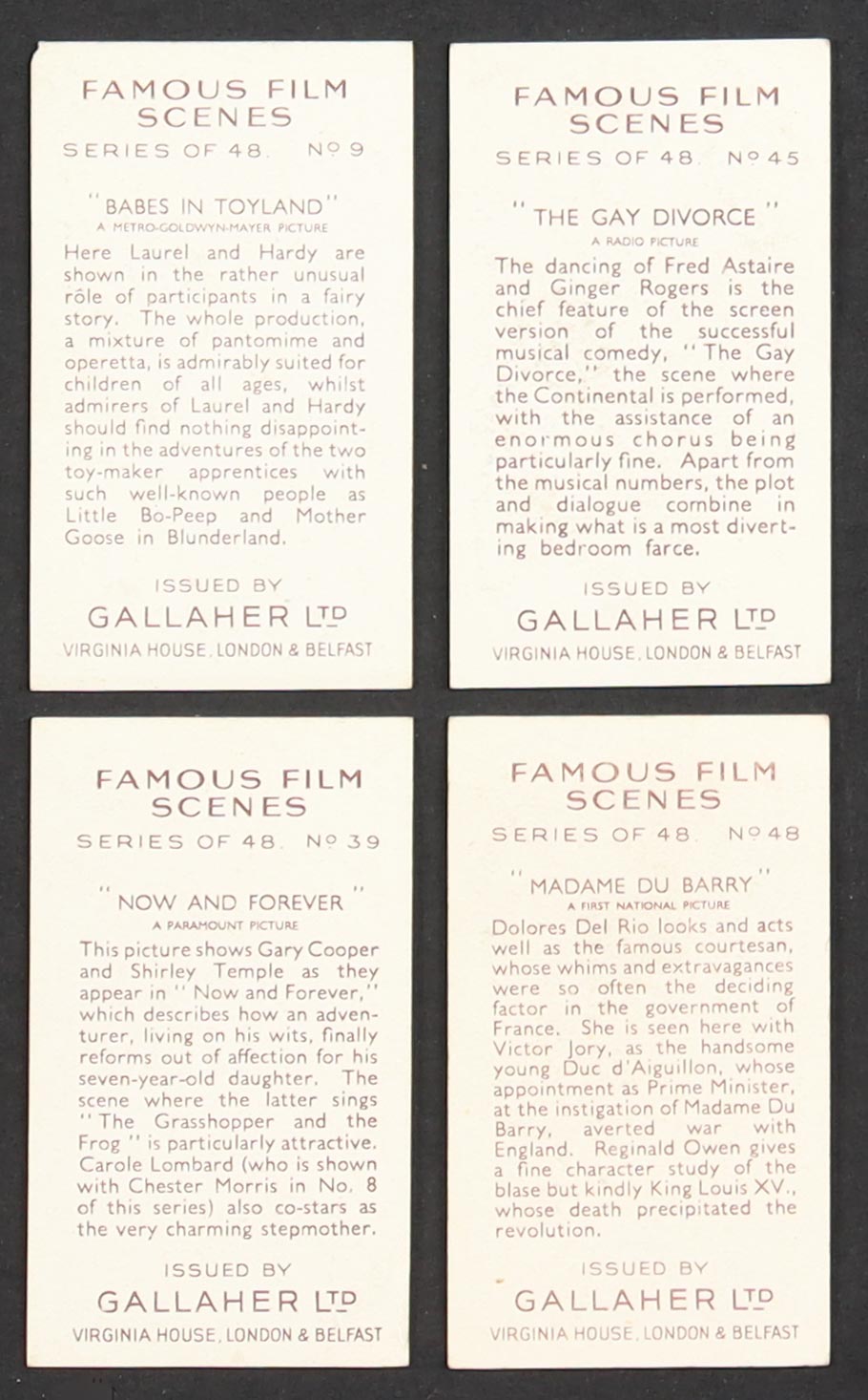 1935 Gallaher "Famous Film Scenes" Complete Set of (48) Cigarette Cards with Babes in Toyland #9, The Gay Divorce #45, Now And Forever #39, Madame Du Barry #48