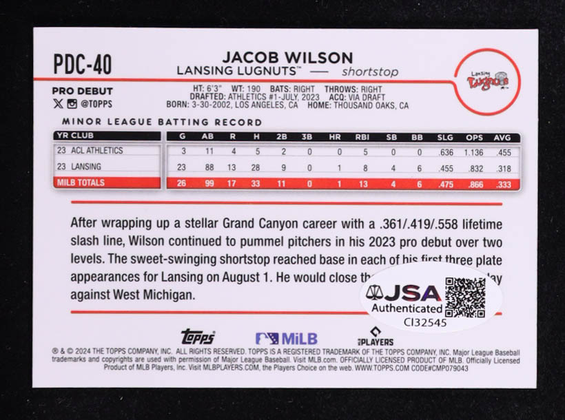 Jacob Wilson 2024 Topps Pro Debut Chrome #PDC-40