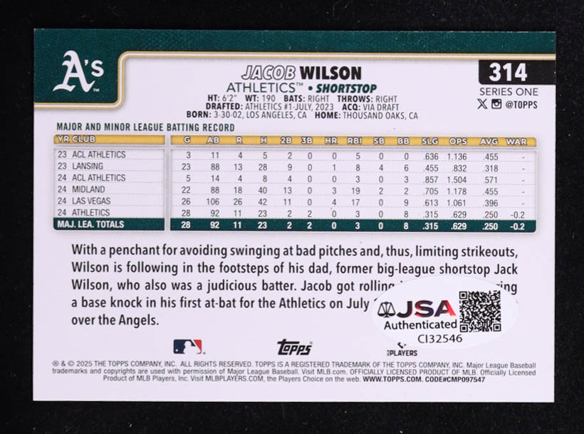 JSA Authenticated On-Card Autograph. Please see photos for more details regarding the condition of the card (Oakland Athletics).