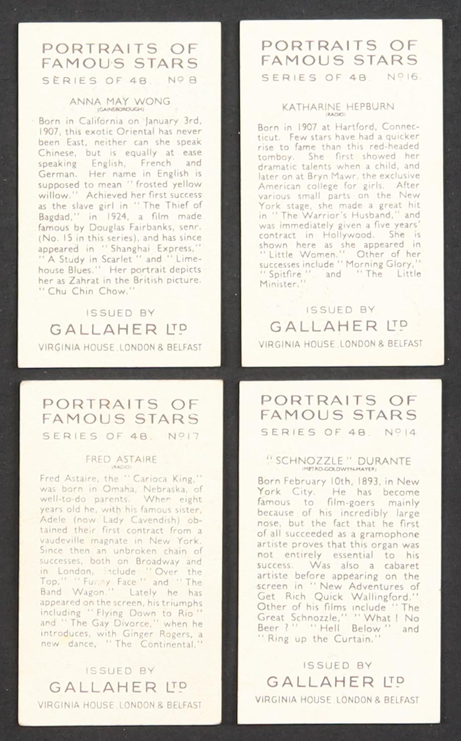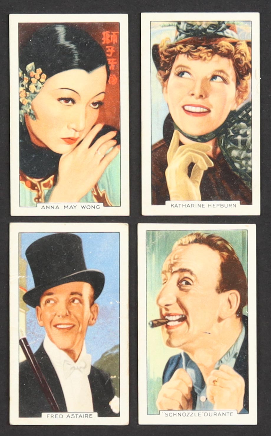 1935 Gallaher Portraits of Famous Stars Complete Set of (48) Cigarette Cards with Schnozzle Durante #14, Anna May Wong #8, Fred Astaire #17, Katharine Hepburn #16