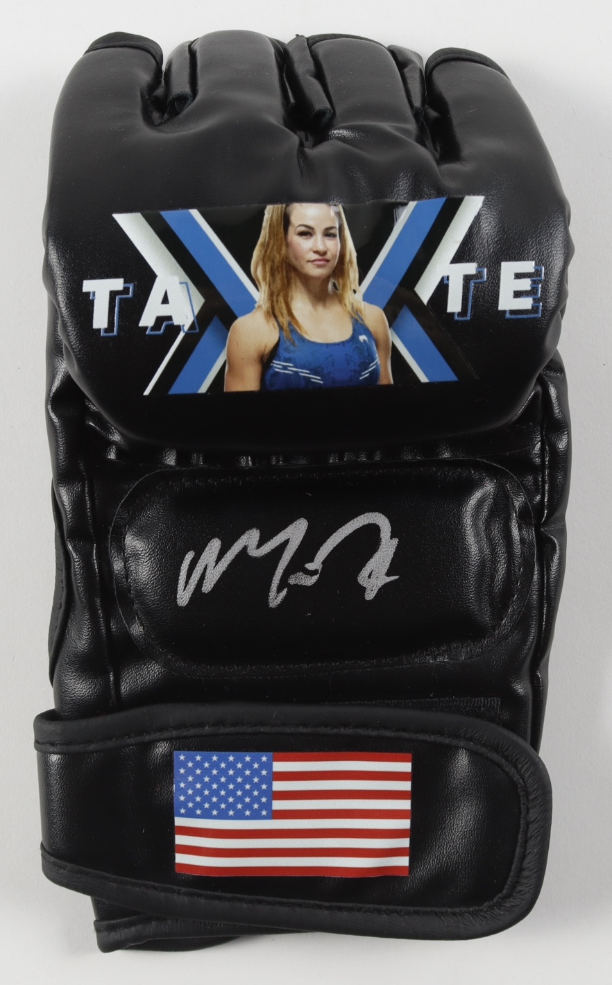 Custom right-hand glove is hand-signed by Miesha Tate (UFC).