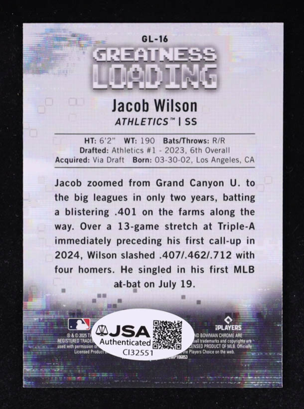 Jacob Wilson 2025 Bowman Chrome Greatness Loading #GL-16 RC